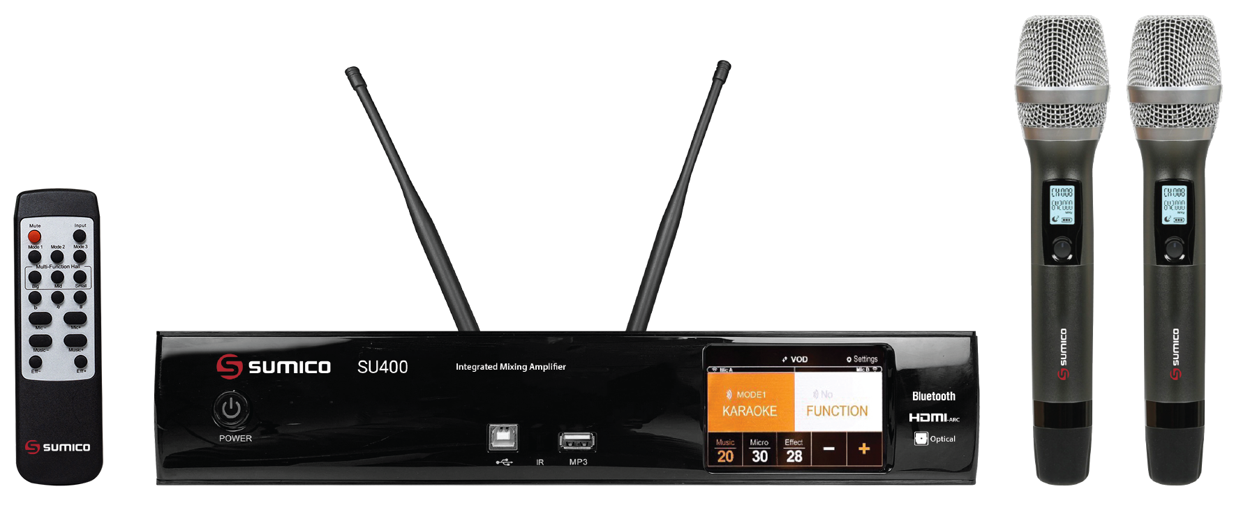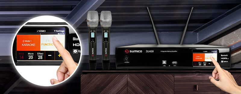 Ampli Sumico SU400 là dòng ampli karaoke kỹ thuật số tích hợp vang số và mạch DAC chất lượng cao nổi tiếng về các thiết bị karaoke. Sở hữu âm thanh trung thực, mạnh mẽ cùng nhiều tính năng ưu việt, ampli karaoke kỹ thuật số SU400 là sự lựa chọn lý tưởng cho các hệ thống karaoke hiện đại, chắc chắn sẽ mang đến cho người dùng những phút giây giải trí đầy thú vị.