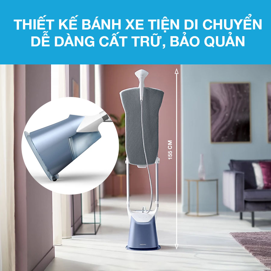 Mặt đế của sản phẩm được làm nóng, bởi công nghệ nhiệt độ OptimalTEMP. Đảm bảo không gây ra vết cháy trên mọi loại vải được ủi qua. Bánh xe được trang bị phía dưới, giúp người dùng dễ di chuyển từ nơi này qua nơi khác….