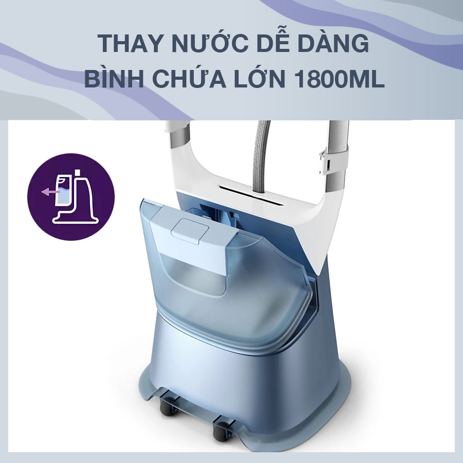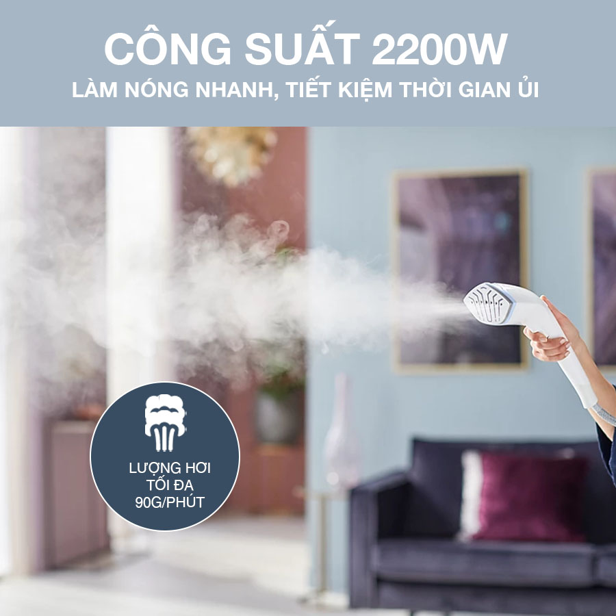 Hơi phun của máy sẽ liên tục 35g/phút, và tăng cường lên đến 90g/phút. Giờ đây, bạn sẽ không cần phải tốn nhiều thời gian, công sức để làm phẳng các nếp nhăn trên quần áo.’