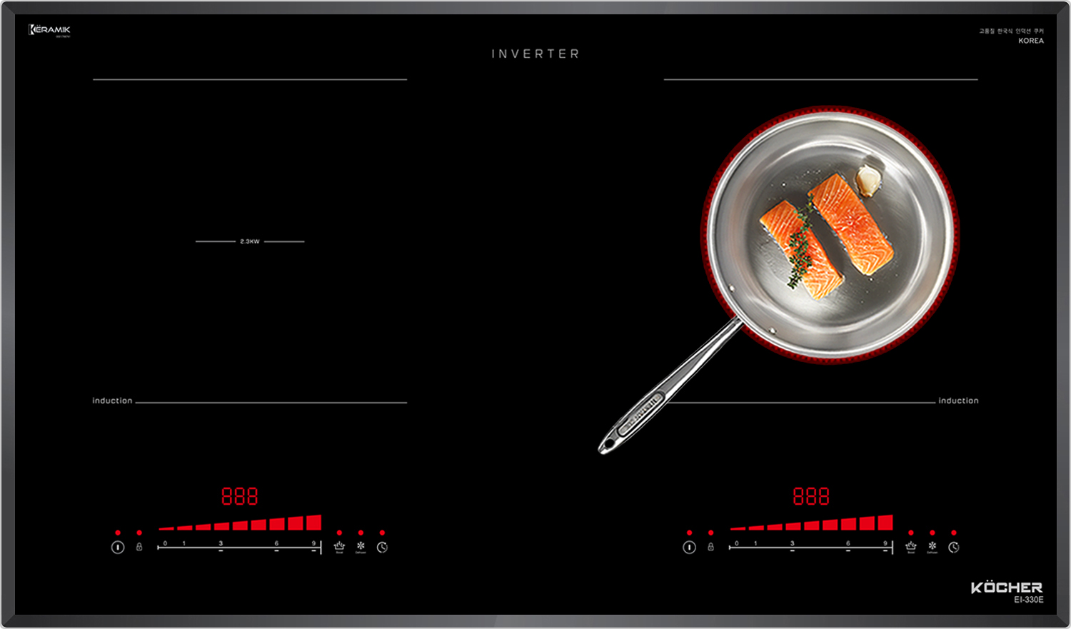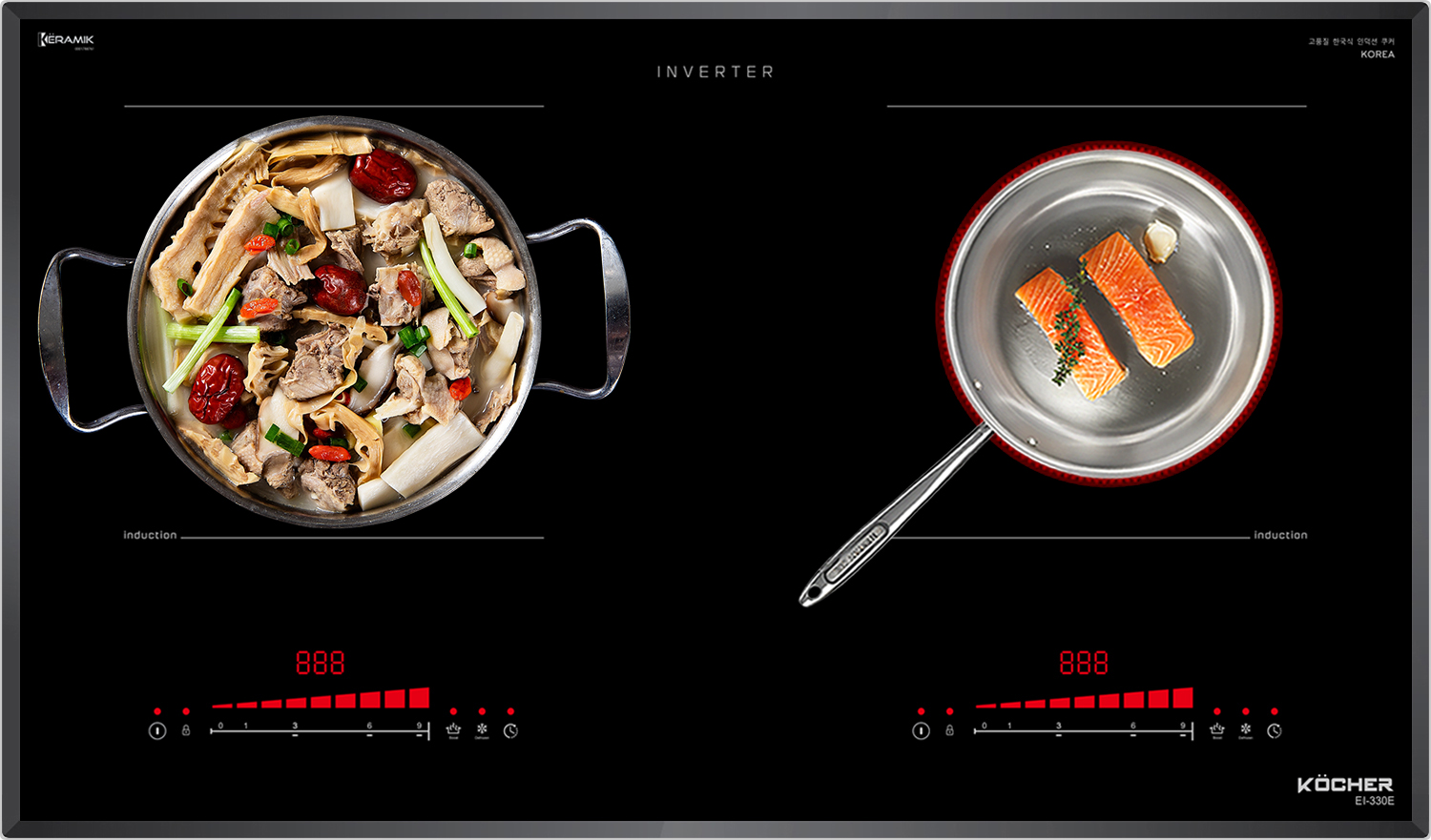 Bếp điện từ Kocher EI-330E được tích hợp chức năng tự nhận diện vùng nấu, khi ta đặt nồi lên vùng nấu từ sau đó ấn nút khởi động bếp sau thời gian 1-2 giây bếp sẽ tự động tìm vùng nấu đã có nồi, ta chỉ việc điều chỉnh mức công suất to nhỏ theo ý muốn mà không phải thao tác chọn vùng nấu như bếp thông thường. Công nghệ Inverter được áp dụng trên bếp điện từ Kocher EI-330E có khả năng phản ứng thay đổi công suất theo điều khiển ngay tức thì, khi người dùng điều chỉnh tăng giảm nhiệt độ đun nấu, bếp điều chỉnh thay đổi tức thì về mức nhiệt độ mong muốn.