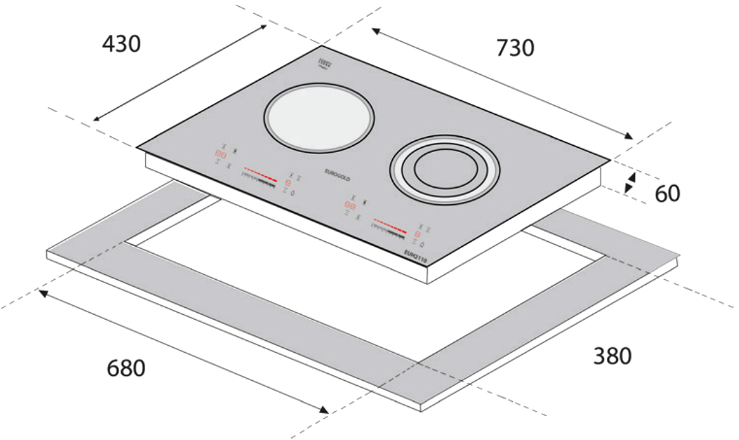 Bếp điện từ Eurogold EUH2110 gồm 2 vùng nấu với tổng công suất 3700W. Vùng nấu từ trái có công suất 2300W khi kích hoạt tính năng nấu nhanh Booster công suất lên tới 3000W. Vùng nấu hồng ngoại sử dụng mâm nhiệt Hi-light với 02 vòng nhiệt có công suất 2300W.