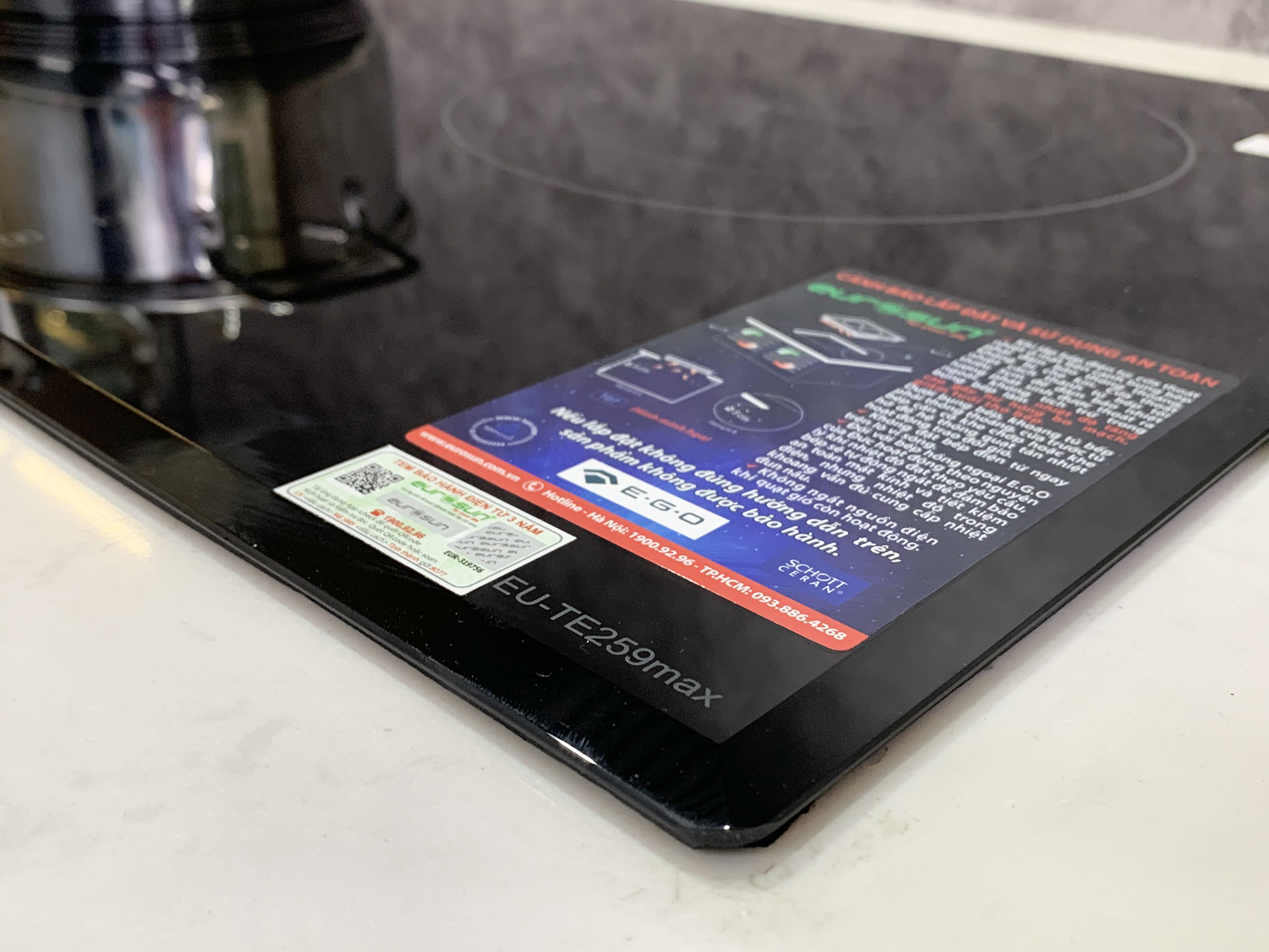 Bảo vệ quá nhiệt (cảm biến nhiệt độ tích hợp trong từng vùng nấu): Bếp điện từ Eurosun EU-TE259Max được thiết kế cảm biến nhiệt độ dưới mỗi vùng nấu, khi có hiện tượng quá nhiệt ( nồi đun bị cạn, cháy,.. ) bếp sẽ chủ động ngắt công suất để đảm bảo an toàn cho thiết bị cũng như đảm bảo không sự cố đáng tiếc xảy ra.