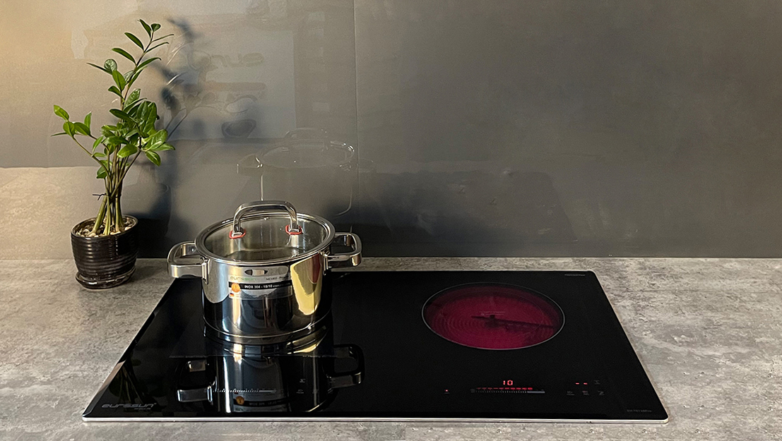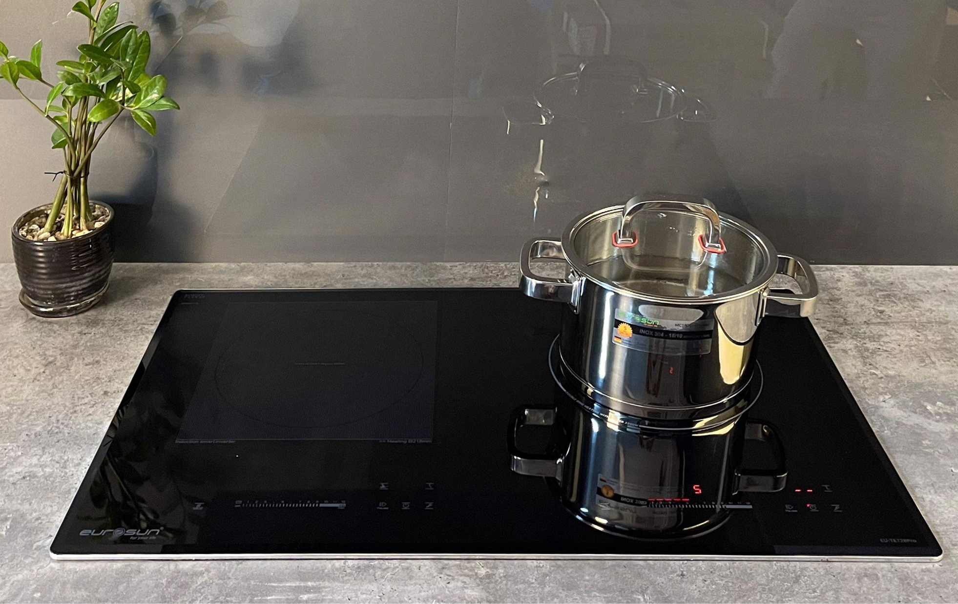 Tự động phát hiện vùng nấu và vùng nấu chỉ nóng lên khi có nồi: Các sản phẩm bếp điện từ của Eurosun bao gồm EU-TE728Pro sẽ chỉ khởi động công suất khi nồi được đặt lên vùng nấu, trường hợp chưa đặt nồi khi đã khởi động, bếp sẽ không đóng công suất và cảnh báo mã lỗi không có nồi hoặc nồi không phù hợp.