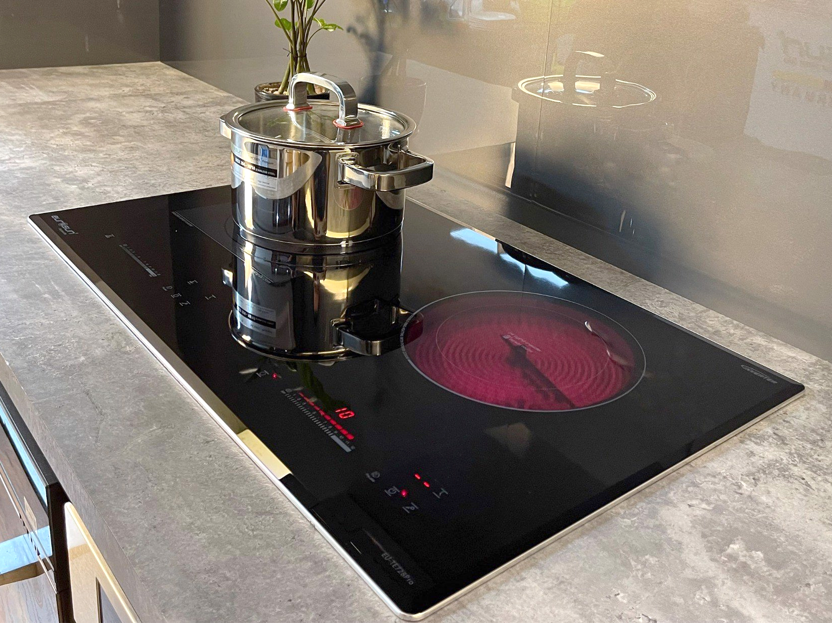 Bạn có thể tận dụng các loại xoong, nồi vì bếp điện không kén nồi, phù hợp với nhiều kích cỡ. Ưu điểm của bếp điện hơn hẳn các sản phẩm khác là có thể nướng trực tiếp lên bề mặt. Nướng thịt, rau củ, hải sản thơm ngon. Bạn nên vệ sinh sạch sẽ mặt bếp sau khi sử dụng. Hoạt động của bếp điện là truyền nhiệt lên mặt kính rồi mới lên đáy nồi nên mặt kính bếp rất nóng. Sau khi nấu, bạn có thể tận dụng hâm nóng thức ăn trên bếp. Ngược lại với vùng điện, bếp từ chỉ hơi nóng vùng nấu. Hiệu suất nấu lên tới 90%. Chức năng nhận diện vùng nấu chỉ sinh nhiệt vùng đáy nồi, tránh nồi thất thoát nhiệt ra ngoài. Chức năng Booster ở vùng từ nấu siêu nhanh kích hoạt công suất MAX 2800W, tuy nhiên thời gian tối đa mặc định dùng chức năng này là 10 phút/lần tránh quá tải.