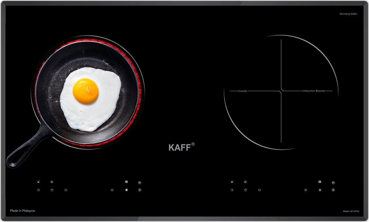 Bếp điện từ Kaff KF-073IC được tích hợp chức năng tự nhận diện vùng nấu, khi ta đặt nồi lên 1 trong 2 vùng nấu sau đó ấn nút khởi động bếp sau thời gian 1-2 giây bếp sẽ tự động tìm vùng nấu đã có nồi, ta chỉ việc điều chỉnh mức công suất to nhỏ theo ý muốn mà không phải thao tác chọn vùng nấu như bếp thông thường. Công nghệ Inverter được áp dụng trên bếp điện từ Kaff KF-073IC có khả năng phản ứng thay đổi công suất theo điều khiển ngay tức thì, khi người dùng điều chỉnh tăng giảm nhiệt độ đun nấu, bếp điều chỉnh thay đổi tức thì về mức nhiệt độ mong muốn.