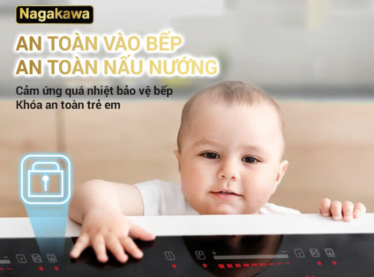 Bếp điện từ đôi Nagakawa NDI9191 được trang bị khóa an toàn, giúp bạn yên tâm nấu nướng khi nhà có trẻ nhỏ. Bạn cũng có thể lựa chọn sử dụng phím an toàn để tránh tình trạng vô tình kích hoạt các nút không cần thiết khi cần vệ sinh mặt bếp.
