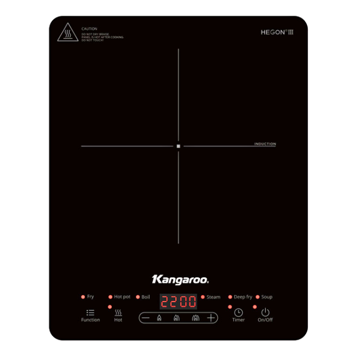 Khác với bếp từ đơn thông thường, Kangaroo KGIC20S1 được tích hợp chế độ cảnh báo “mặt kính nóng” độc đáo và an toàn. Cụ thể: mặt kính bếp nóng thì đèn sẽ sáng lên, nhằm cảnh báo người dùng không chạm vào mặt kính.