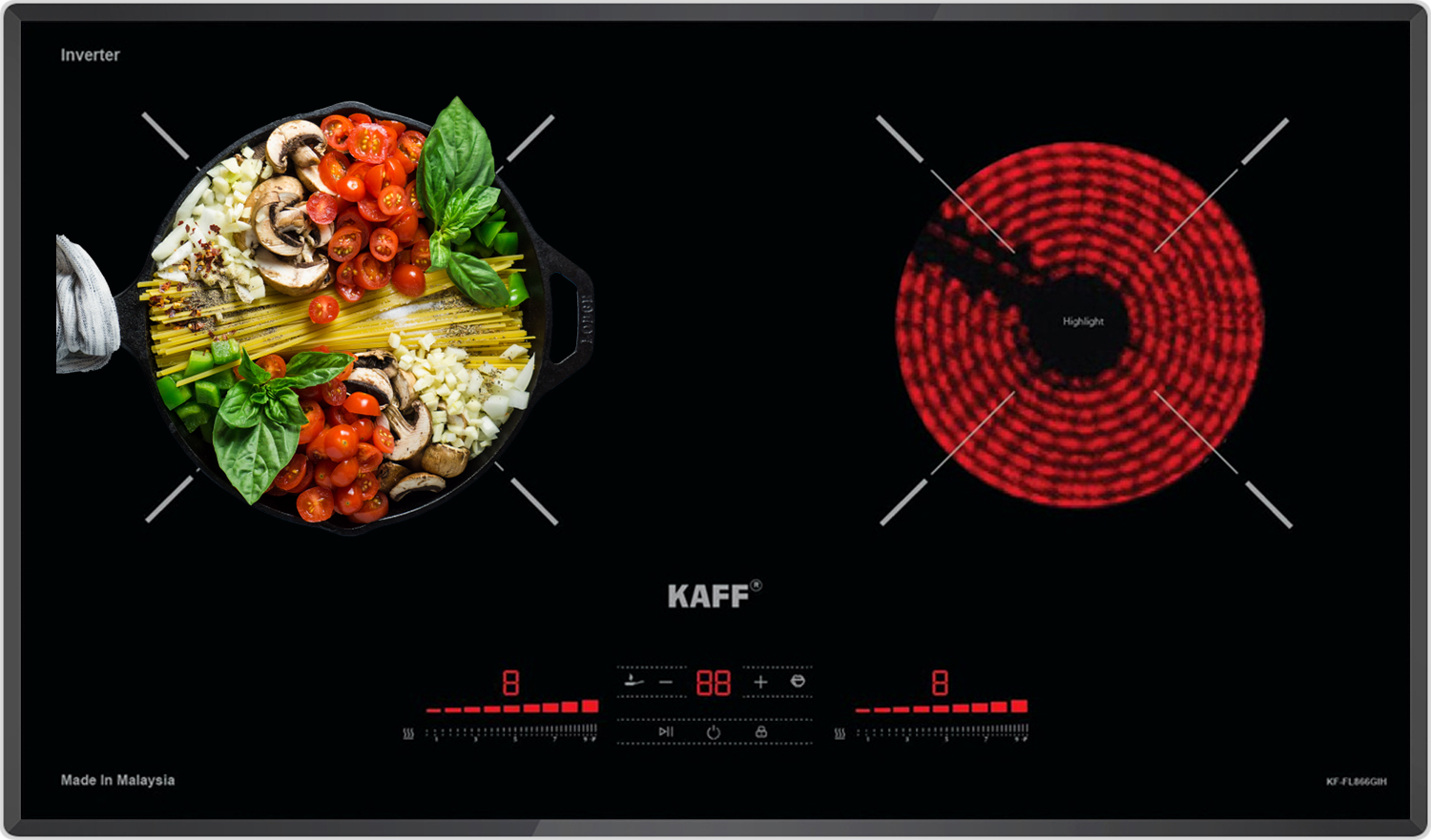 Bếp điện từ Kaff KF-FL866GIH được tích hợp chức năng tự nhận diện vùng nấu, khi ta đặt nồi lên 1 trong 2 vùng nấu sau đó ấn nút khởi động bếp sau thời gian 1-2 giây bếp sẽ tự động tìm vùng nấu đã có nồi, ta chỉ việc điều chỉnh mức công suất to nhỏ theo ý muốn mà không phải thao tác chọn vùng nấu như bếp thông thường. Công nghệ Inverter được áp dụng trên bếp điện từ Kaff KF-FL866GIH có khả năng phản ứng thay đổi công suất theo điều khiển ngay tức thì, khi người dùng điều chỉnh tăng giảm nhiệt độ đun nấu, bếp điều chỉnh thay đổi tức thì về mức nhiệt độ mong muốn.