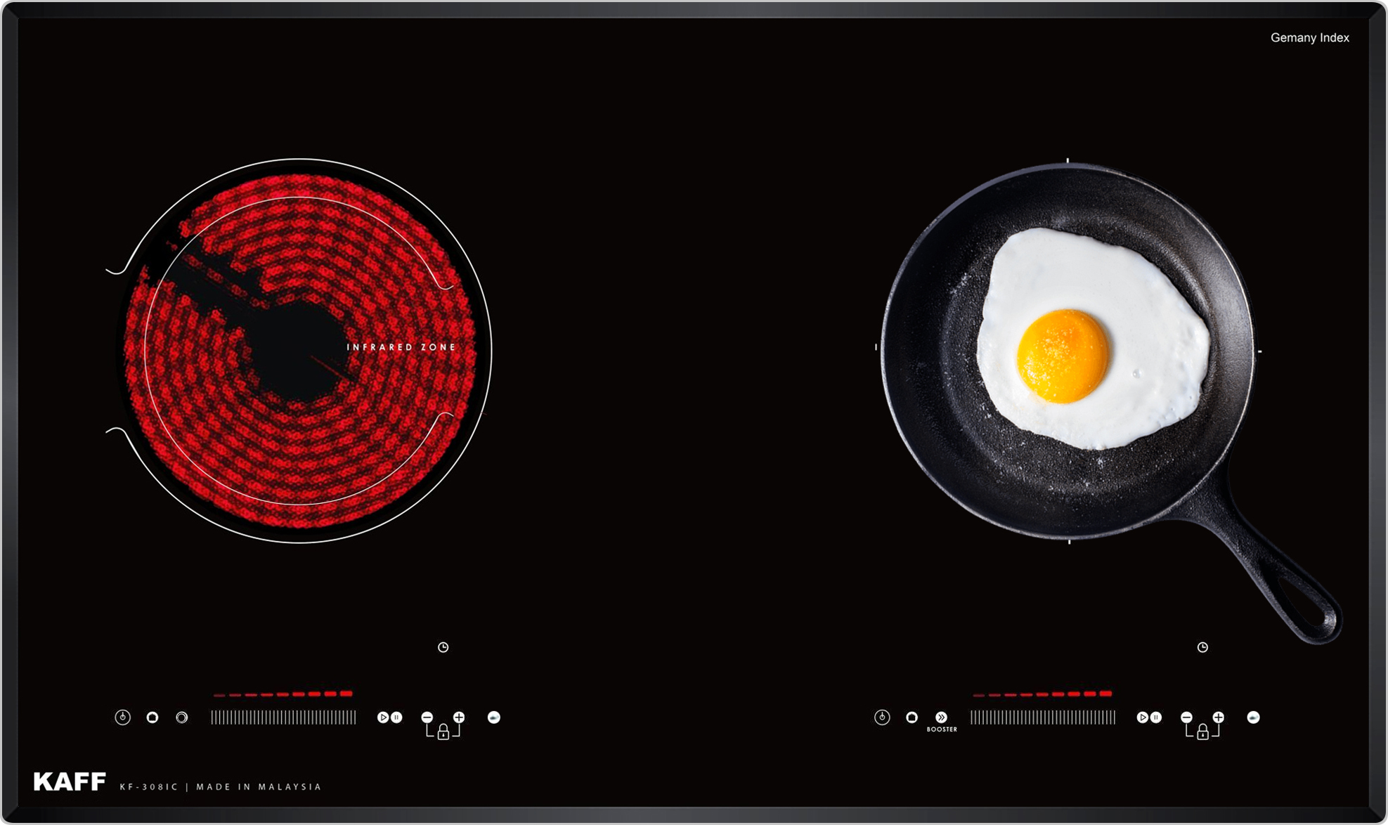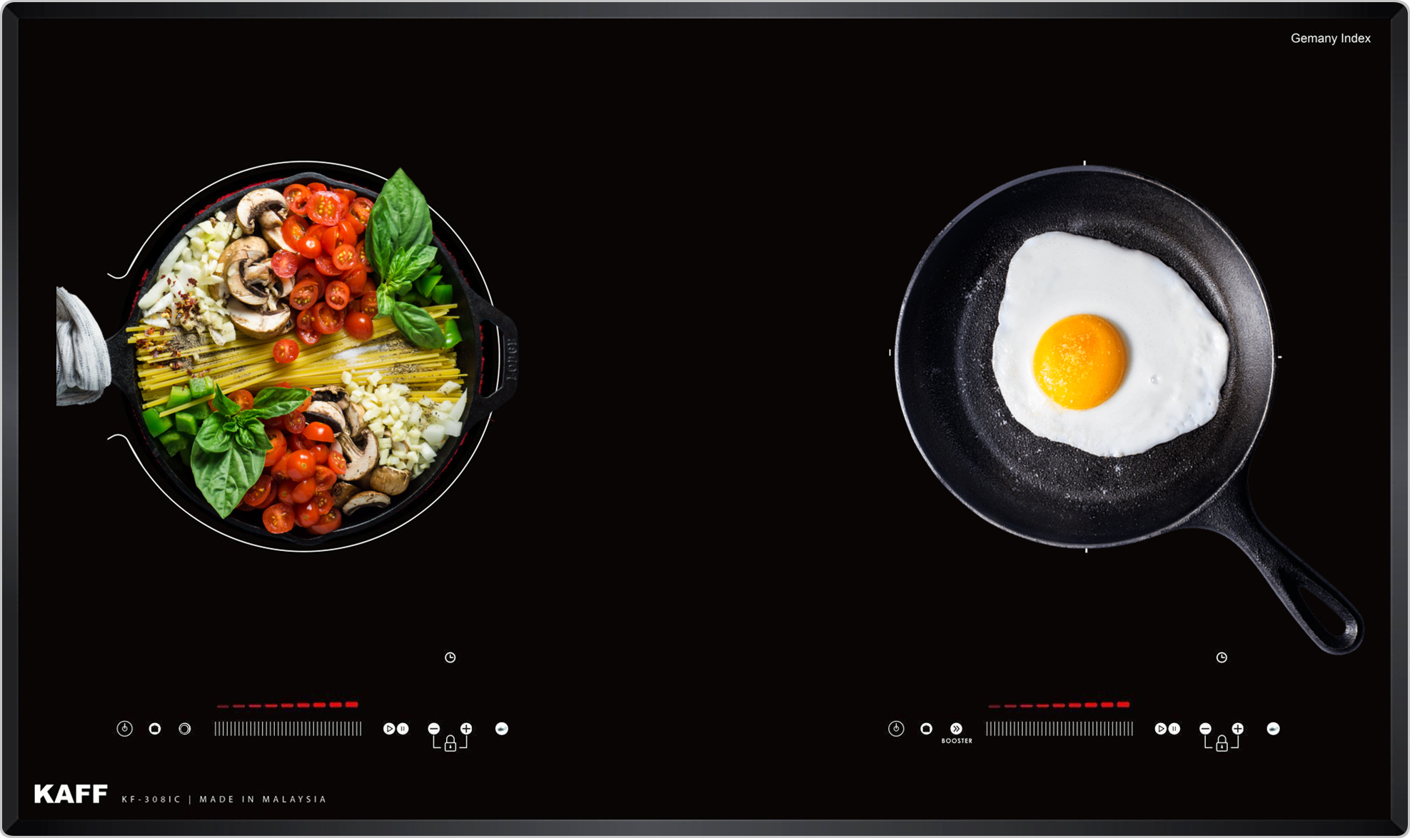Bếp điện từ Kaff KF-SD300IC gồm 2 vùng nấu với tổng công suất 4200W. Vùng nấu từ phải có công suất là 2000W khi kích hoạt tính năng nấu nhanh Booster công suất lên tới 3500W. Vùng nấu hồng ngoại trái trang bị mâm nhiệt cao cấp E.G.O Hi-light với 02 vòng nhiệt có công suất tối đa 2200W. Chỉ trong chốc lát sau khi kích hoạt tính năng này, nhiệt lượng trên vùng nấu từ tăng lên công suất tương đương với mức nhiệt lượng lớn nhất. Do đó, các món ăn được nấu chín nhanh hơn, tiết kiệm thời gian vào bếp cho chị em nội trợ. Chức năng Booster nấu siêu nhanh, tuy nhiên thời gian tối đa mặc định dùng chức năng này là 10 phút / lần tránh quá tải.