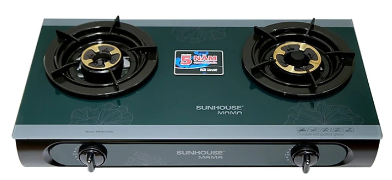 Bếp gas dương kính SUNHOUSE MAMA MMB0780S có 2 lò đun, điều khiển lửa to nhỏ bằng núm vặn tiện lợi, chế biến được nhiều món ăn cùng lúc. Mặt kính với gam màu đen sang trọng, tô điểm họa tiết trang trí vừa mang lại tính thẩm mỹ cao vừa có khả năng chịu lực, chịu nhiệt, đồng thời dễ dàng vệ sinh sau khi sử dụng.
