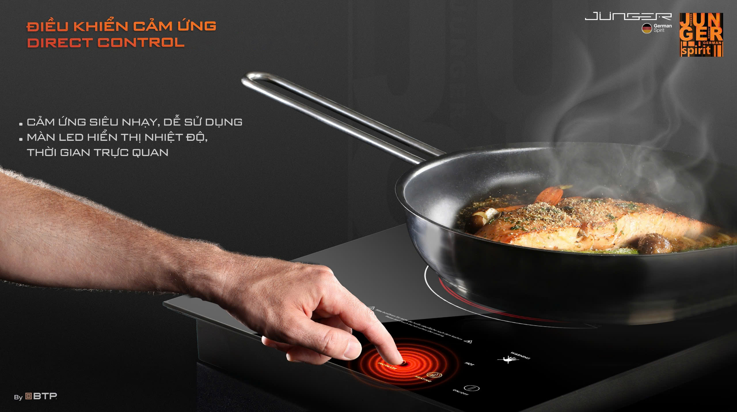 Bếp hồng ngoại đơn Junger IS-19 được trang bị bảng điều khiển cảm ứng Direct Control siêu nhạy, dễ dàng sử dụng chỉ với vài thao tác chạm nhẹ. Kết hợp màn hình hiển thị LED sắc nét đầy đủ thông tin về mức công suất, chế độ nấu, thời gian nấu,… giúp bạn dễ dàng theo dõi và điều chỉnh quá trình nấu nướng.