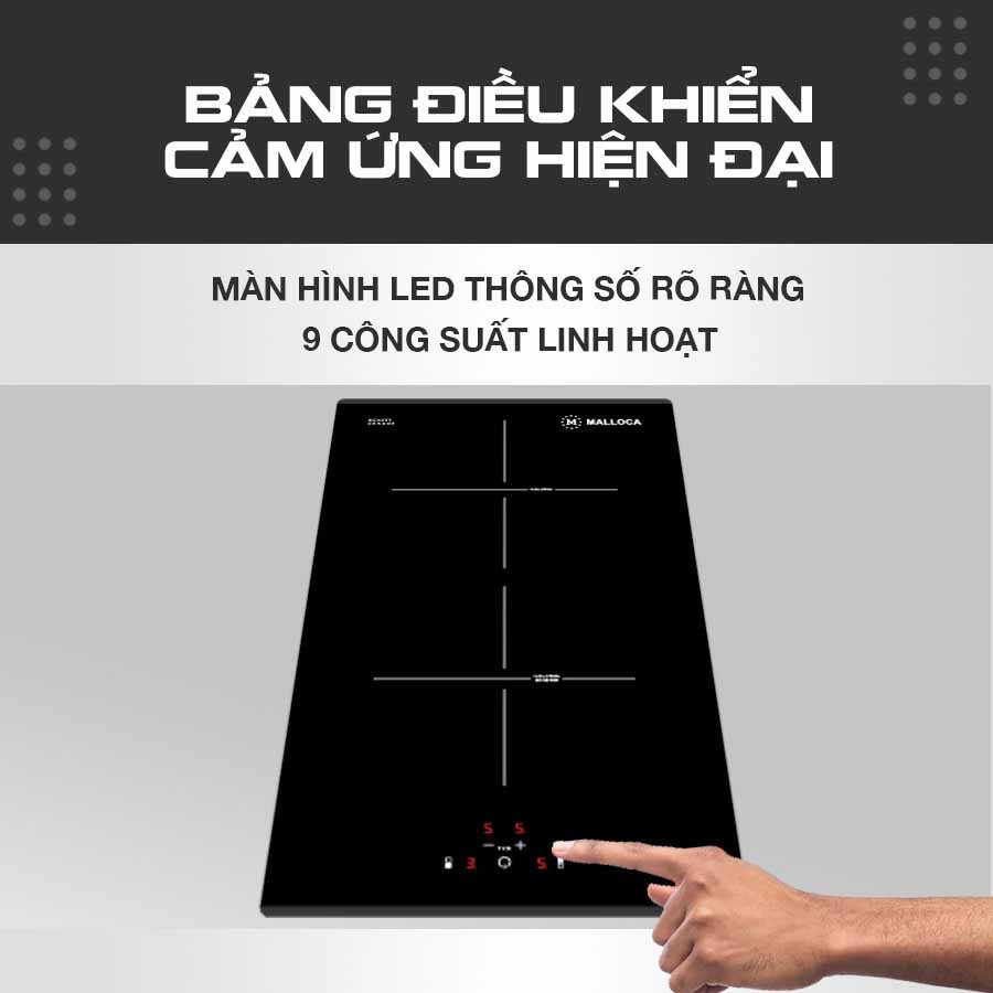 Malloca MDR 302 là bếp hồng ngoại 2 vùng nấu nhập khẩu Tây Ban Nha, sử dụng mặt kính Schott Ceran, điều khiển cảm ứng vô cùng tiện lợi.