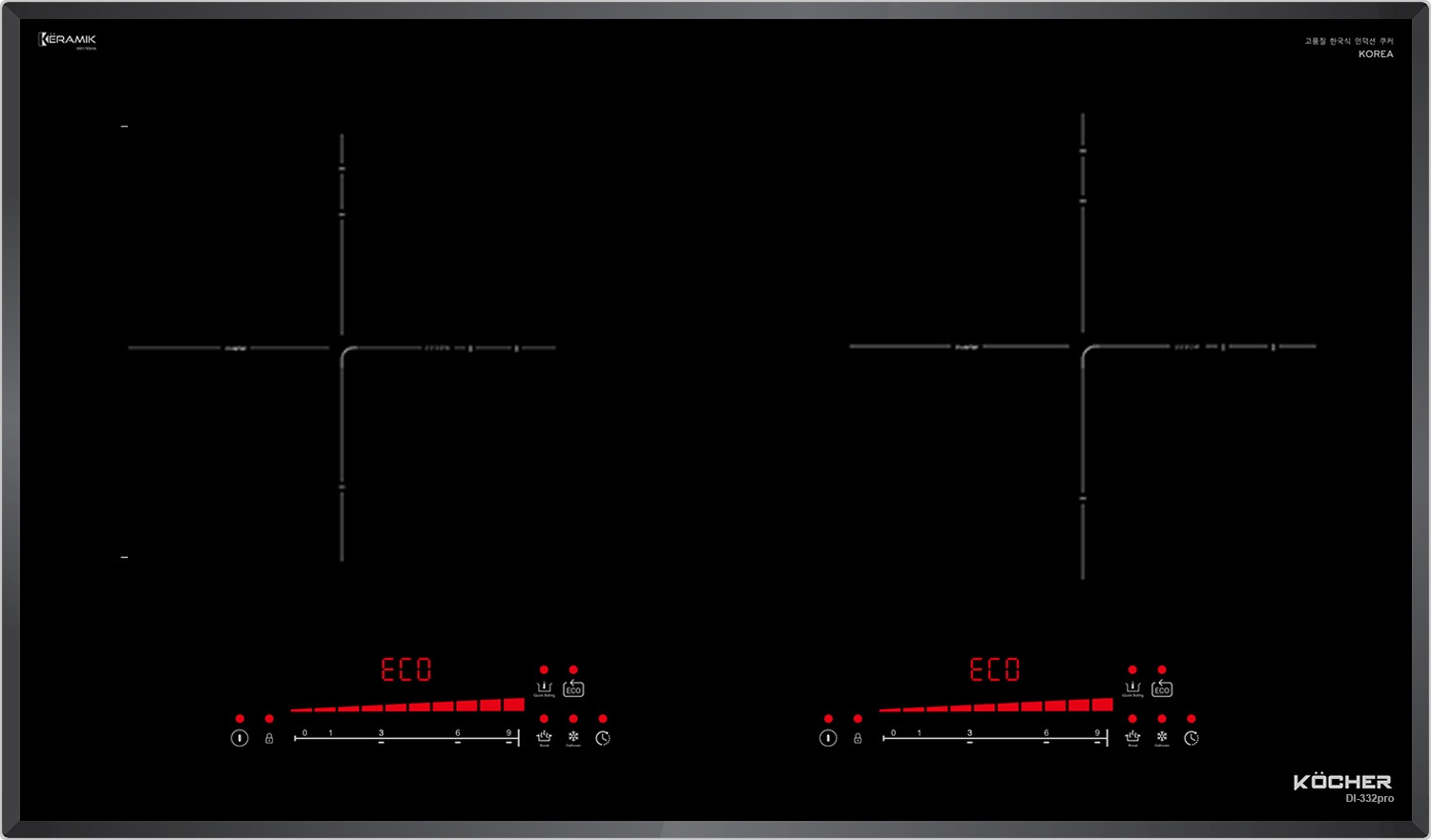 Đây một trong số rất ít bếp từ có thể đạt Booster lên đến 3200W. Với thiết kế của bếp từ Kocher DI-332Pro cả 2 vùng nấu có khả năng kích công suất Booster cực đại lần lượt là 2200W | 3200W giúp công việc đun nấu trở nên nhanh chóng và tiết kiệm thời gian khi cần thiết.
