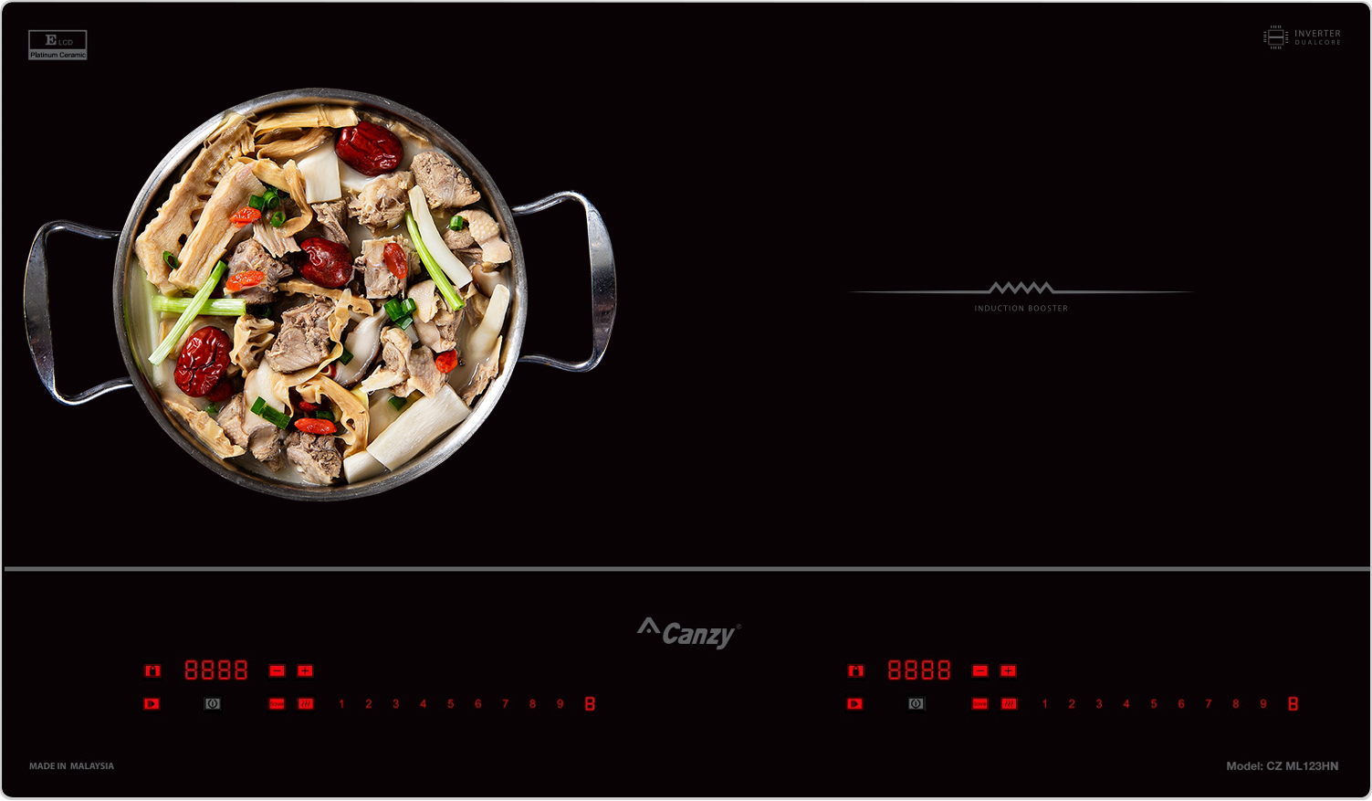Bếp từ Canzy CZ-ML123HN được tích hợp chức năng tự nhận diện vùng nấu, khi ta đặt nồi lên 1 trong 2 vùng nấu sau đó ấn nút khởi động bếp sau thời gian 1-2 giây bếp sẽ tự động tìm vùng nấu đã có nồi, ta chỉ việc điều chỉnh mức công suất to nhỏ theo ý muốn mà không phải thao tác chọn vùng nấu như bếp thông thường. Công nghệ Inverter được áp dụng trên bếp từ Canzy CZ-ML123HN có khả năng phản ứng thay đổi công suất theo điều khiển ngay tức thì, khi người dùng điều chỉnh tăng giảm nhiệt độ đun nấu, bếp điều chỉnh thay đổi tức thì về mức nhiệt độ mong muốn.