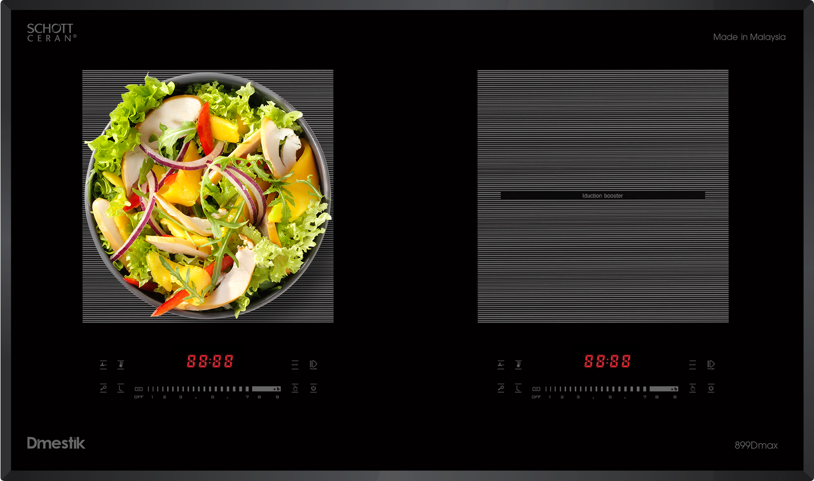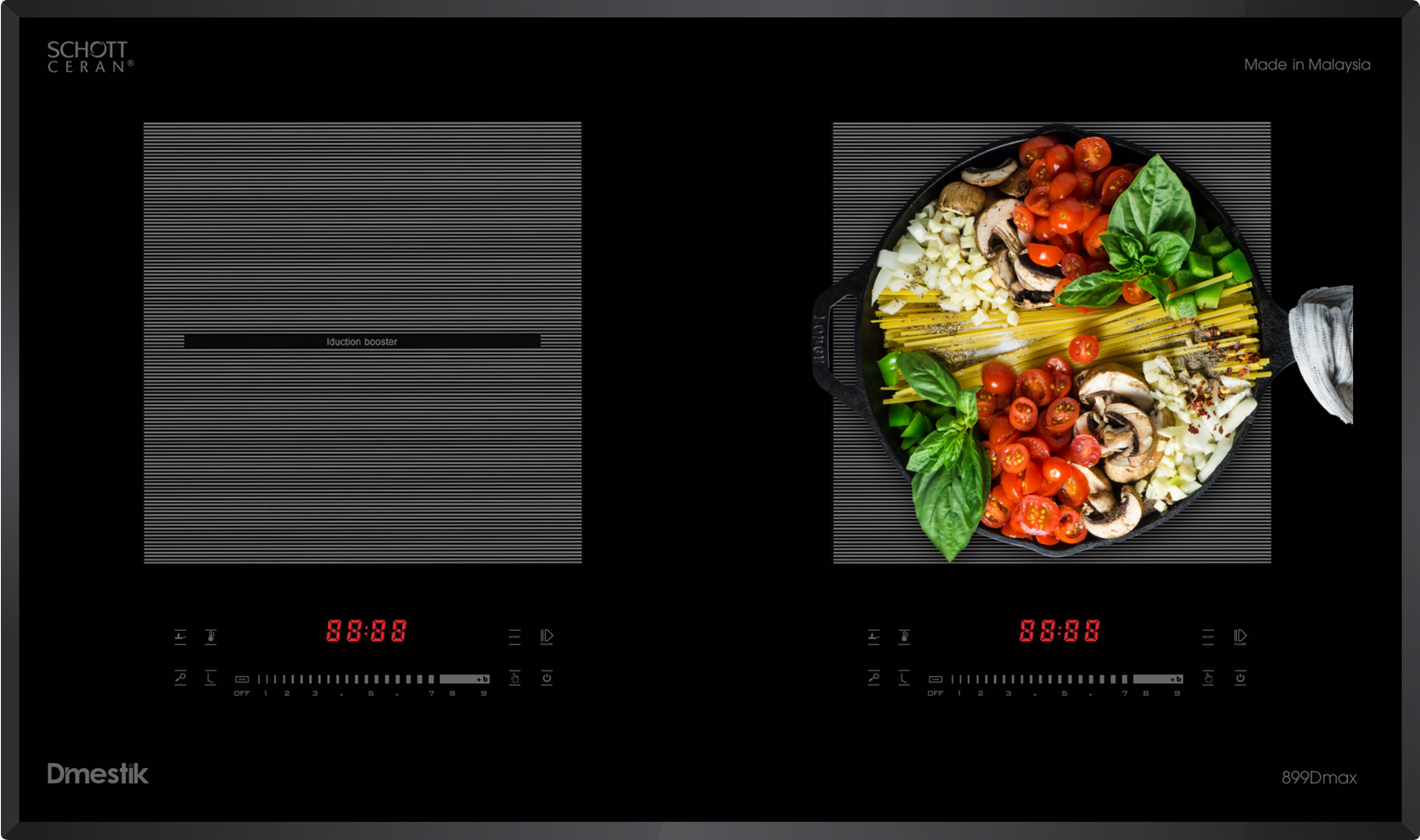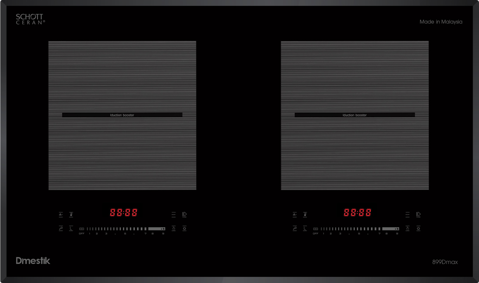 Bếp từ Dmestik 899Dmax thiết bảng điều khiển dạng Slider Control độc lập cho từng vùng nấu cùng nhiều tiện ích được cài đặt sẵn. Siêu nhạy, dễ dàng điều khiển và phù hợp với nhiều lứa tuổi.
