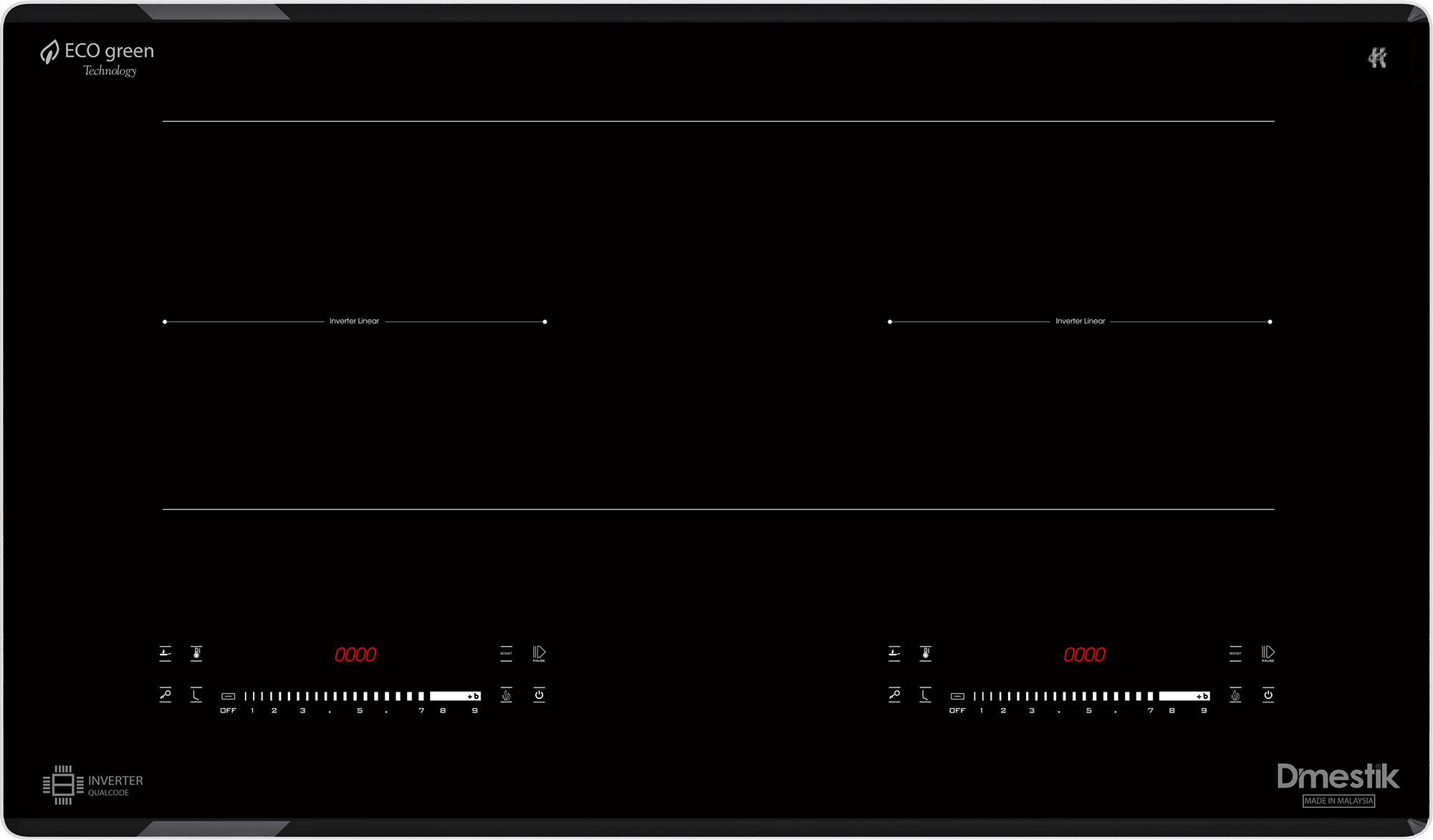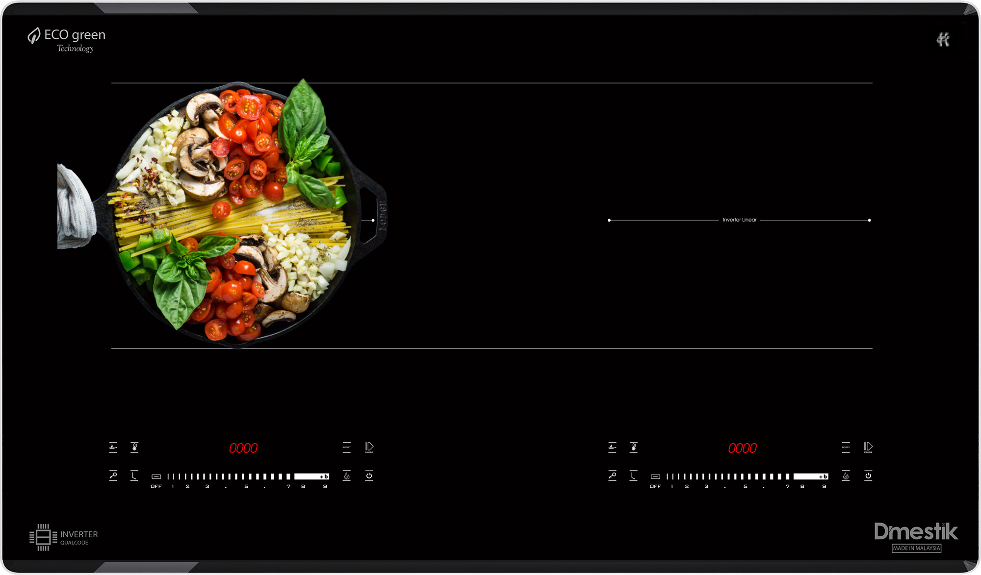 Bếp từ Dmestik ML999DKI được tích hợp chức năng tự nhận diện vùng nấu, khi ta đặt nồi lên 1 trong 2 vùng nấu sau đó ấn nút khởi động bếp sau thời gian 1-2 giây bếp sẽ tự động tìm vùng nấu đã có nồi, ta chỉ việc điều chỉnh mức công suất to nhỏ theo ý muốn mà không phải thao tác chọn vùng nấu như bếp thông thường. Công nghệ Inverter được áp dụng trên bếp từ Dmestik ML999DKI có khả năng phản ứng thay đổi công suất theo điều khiển ngay tức thì, khi người dùng điều chỉnh tăng giảm nhiệt độ đun nấu, bếp điều chỉnh thay đổi tức thì về mức nhiệt độ mong muốn.
