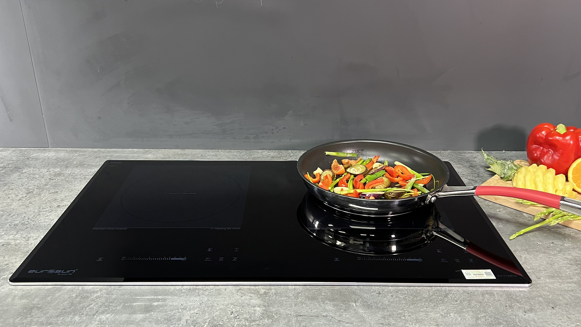 Bảng mạch điều khiển của sản phẩm tôi đang giới thiệu với bạn hôm nay sử dụng loại bảng điều khiển Controls Flex Touch với đặc trưng điều khiển rời cả 2 vùng nấu với chỉ một thao tác tăng giảm duy nhất là kéo Slider. Với lại bảng mạch này có khả năng chịu được đến 105 độ C và chỉ tiêu thụ có chưa đầy 0,5W/h rất tiết kiệm điện. Đồng thời nó cũng được lập trình nhiều tính năng nấu thông minh như: hâm nóng, chiên rán, rã đông, tạm dừng… tương lai Eurosun có thể sẽ có những bản nâng cấp khác.