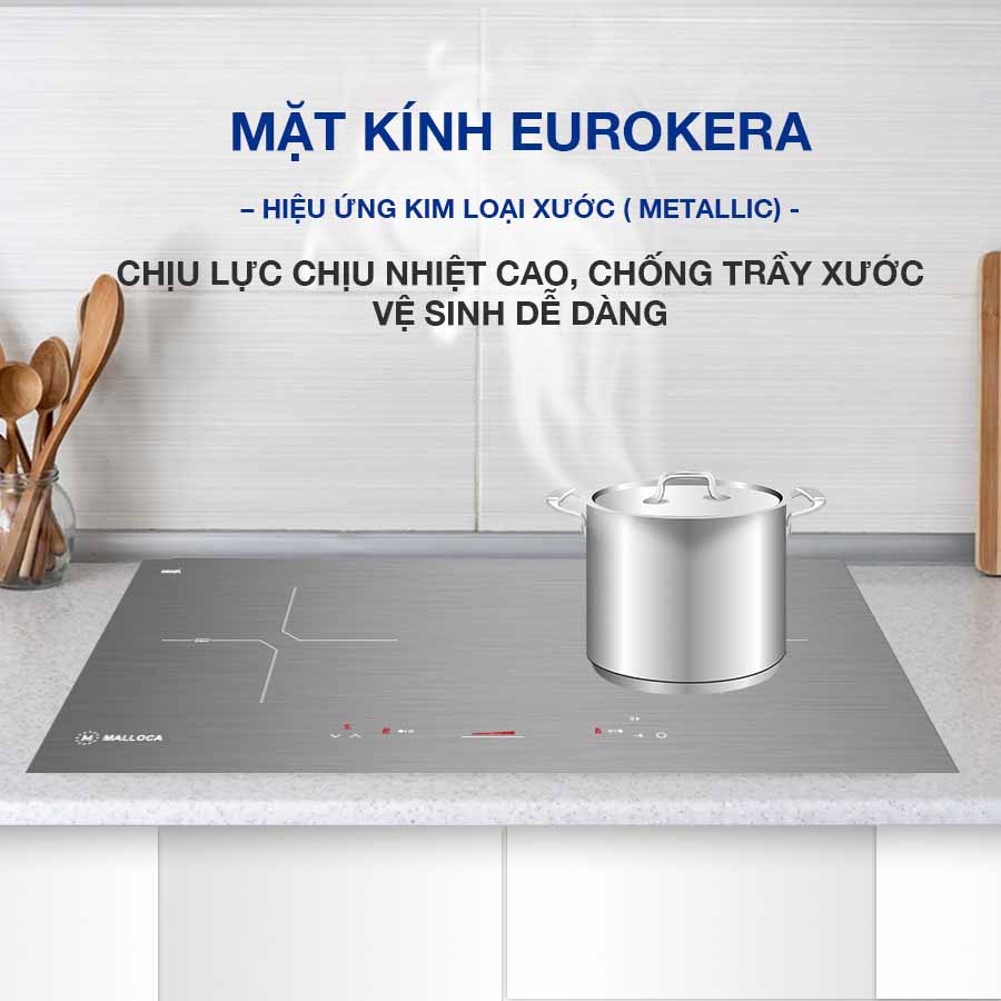 Là bếp từ 2 vùng nấu của thương hiệu nổi tiếng Malloca, cùng mặt kiếng dạng xước Metalic đem đến nét đẹp và sang trọng hơn. Với chất liệu kính Eurokera chịu lực và chịu nhiệt tuyệt vời, bếp Malloca MH-02IS là giải pháp nấu nướng hiệu quả và an toàn cho gia đình bạn.