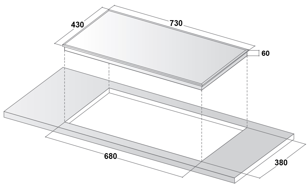 Đây là mặt kính chuyên dụng dành cho bếp điện từ, là một loại kính có chất lượng cao, rất cứng, bền và có nhiều đặc điểm nổi trội như: khả năng chịu nhiệt, khả năng chống trầy xước và chống va đập …. Mặt kính gồm các thấu kính hội tụ, truyền nhiệt từ bếp lên đáy nồi theo phương thẳng đứng, không thất thoát nhiệt ra môi trường. Mặt kính màu xám liền nguyên khối, an toàn, thẩm mỹ và tiện trong việc vệ sinh, lau chùi.