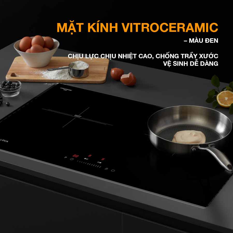 - Mặt kính Vitroceramic siêu bền: Bếp từ Malloca MH-732IN sử dụng mặt kính Ceramic có tính năng chịu lực và chịu nhiệt độ cao. Bạn hoàn toàn thoải mái nấu nướng mà không hề lo sợ mặt kiếng bị nứt vỡ.
