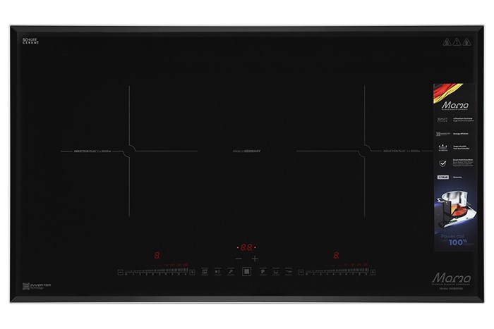 – Bếp từ đôi MMB9996 có mặt bếp bằng kính Ceramic – Schott Ceran (Đức) chịu lực, chịu nhiệt tốt, bóng sáng bền đẹp, dễ lau chùi.