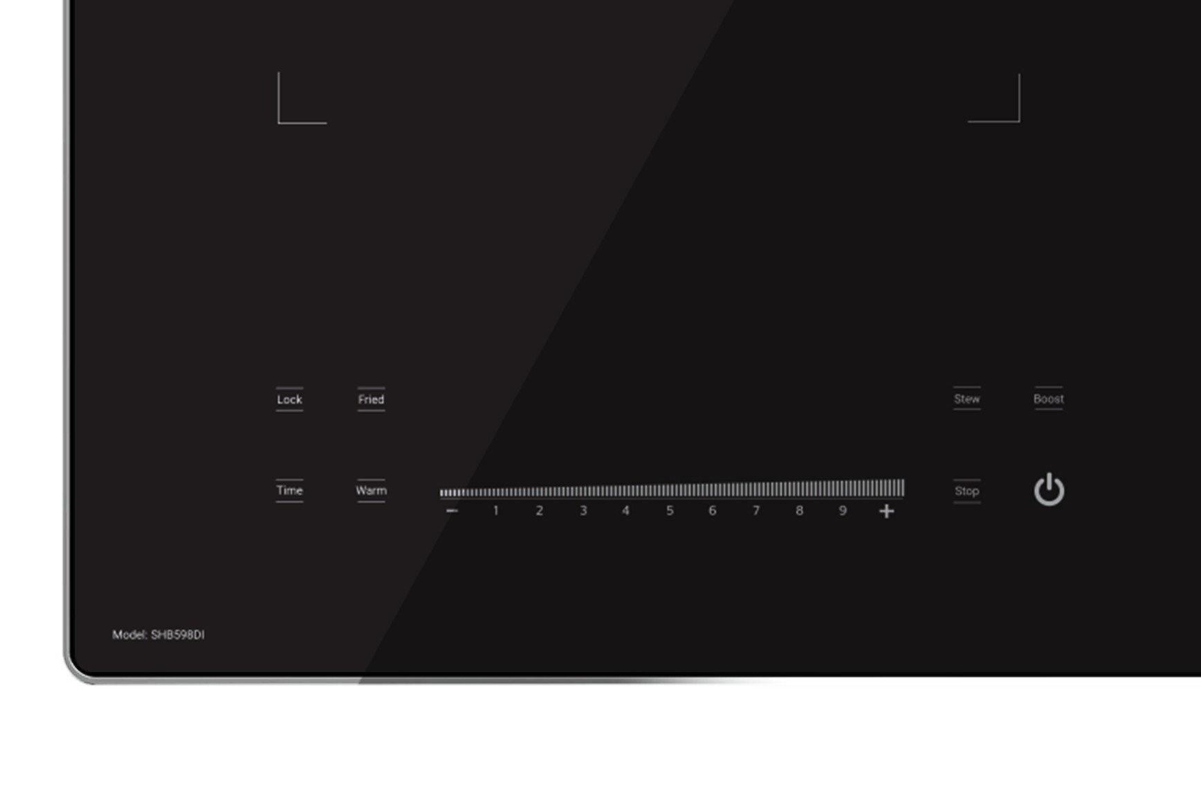 Sản phẩm được trang bị mặt điều khiển nhạy bén tích hợp phím cảm ứng trượt và bấm riêng biệt cho từng vùng nấu với 9 mức nhiệt từ thấp tới cao. Chỉ với thao tác trượt tay sang trái hoặc phải, người dùng đã có thể tăng giảm và điều chỉnh công suất, nhiệt độ thời gian một cách dễ dàng.