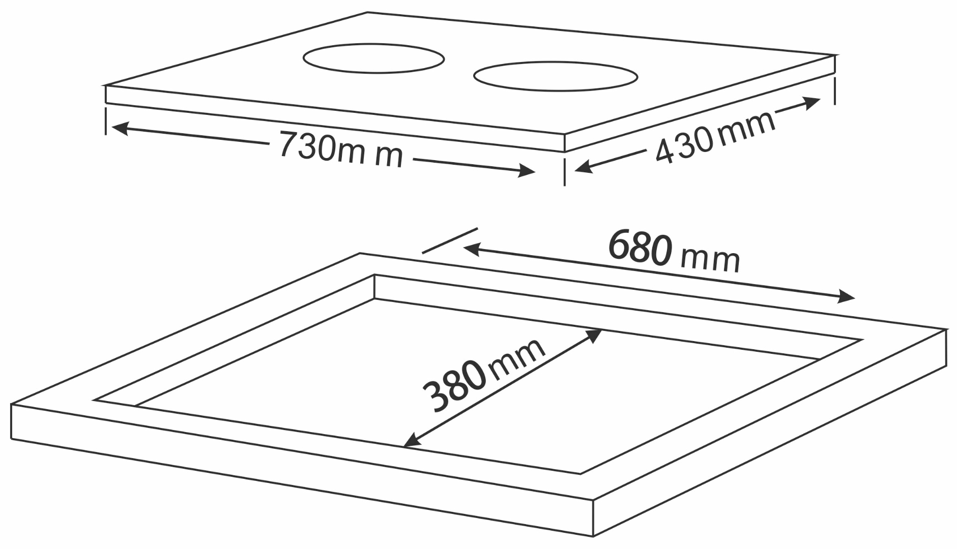 – Kích thước vùng nấu: Trái Ø 20.5 cm – Phải Ø 20.5 cm.