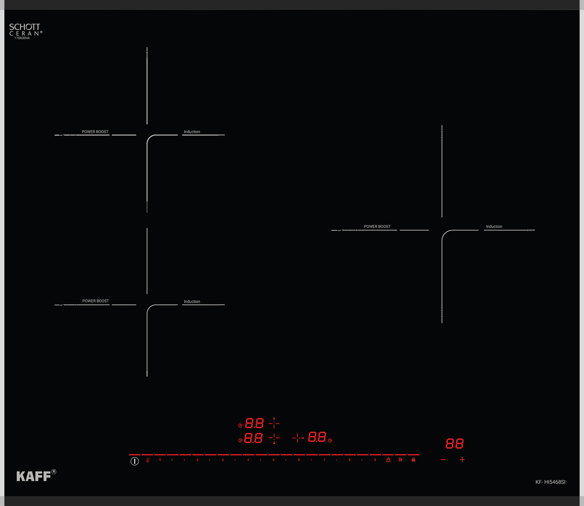 Bếp từ Kaff KF-HI5468SI sử dụng mặt kính Schott Ceran sản xuất tại Đức, mặt kính được làm từ chất liệu gốm thủy tinh có khả năng chịu nhiệt lên đến 1000°C, kháng sốc 750°C. Bề mặt kính chịu nóng lạnh cũng như sự thay đổi đột ngột của nhiệt độ. Độ giãn nở vì nhiệt thấp nên bếp hoạt động rất hiệu quả và cách nhiệt. Mặt bếp tản nhiệt nhanh và được cách điện an toàn với các linh kiện điện tử bên trong thân.