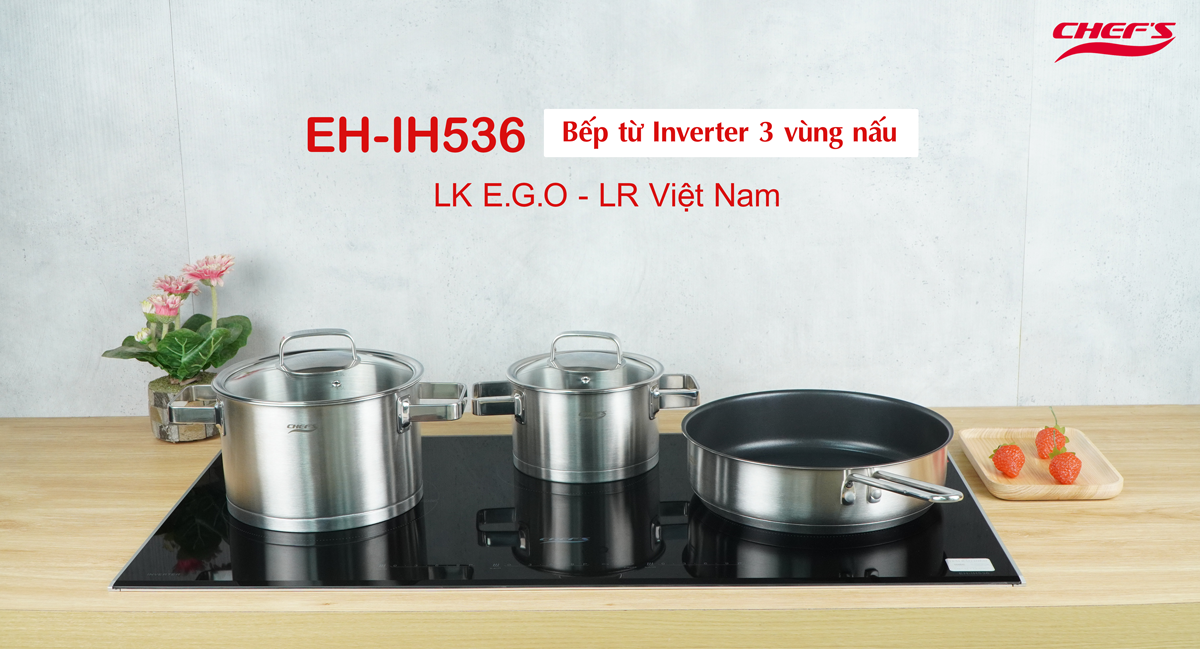 Bếp từ ba vùng nấu Chef’s EH – IH536 tổng công suất tối đa 6800W mạnh mẽ, làm chín thức ăn nhanh chóng, mặt kính Schott Ceran cao cấp, tích hợp tính năng hẹn giờ chủ động thời gian nấu, trang bị nhiều chức năng an toàn, thiết kế lắp âm phù hợp các gian bếp hiện đại.