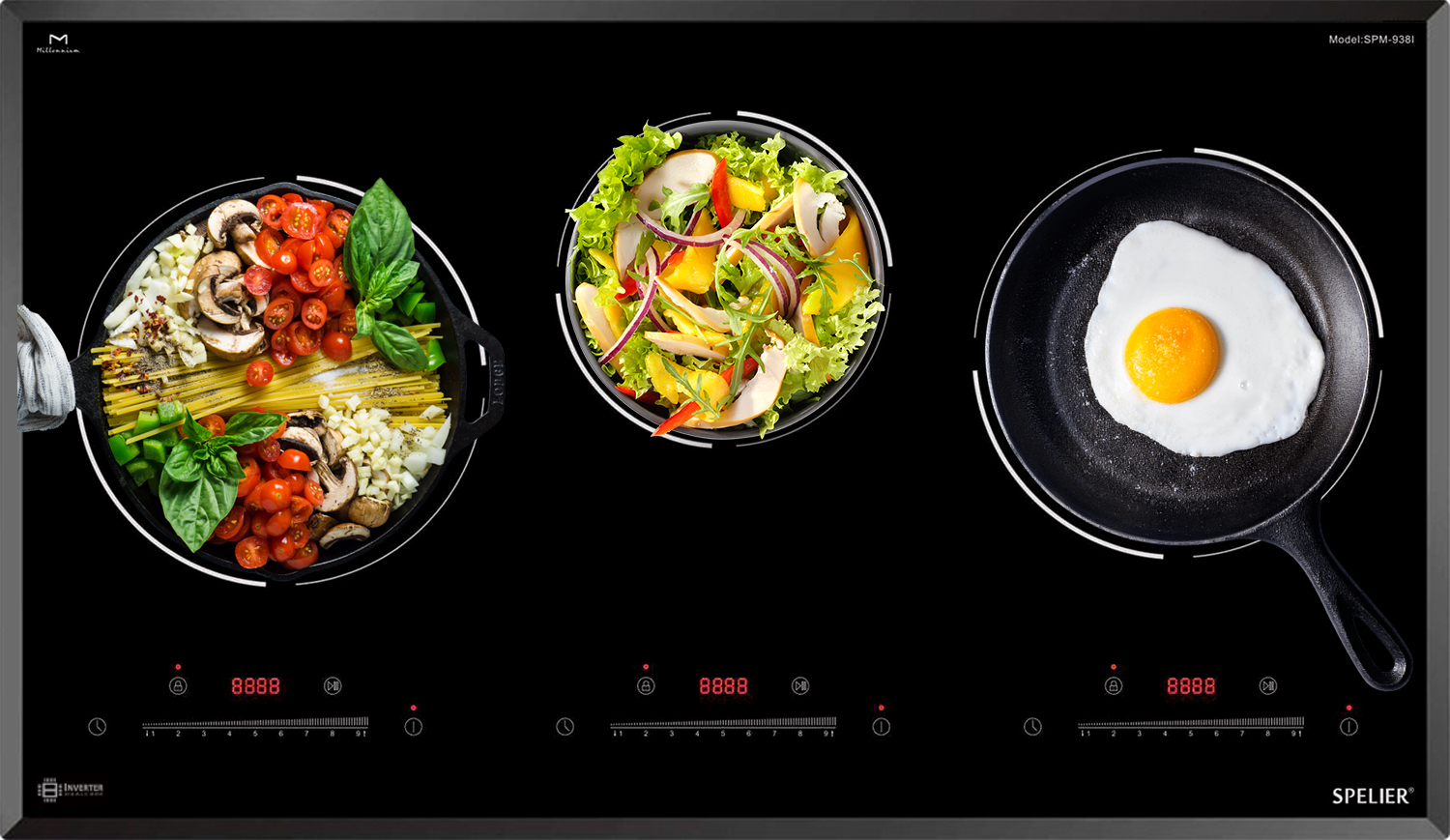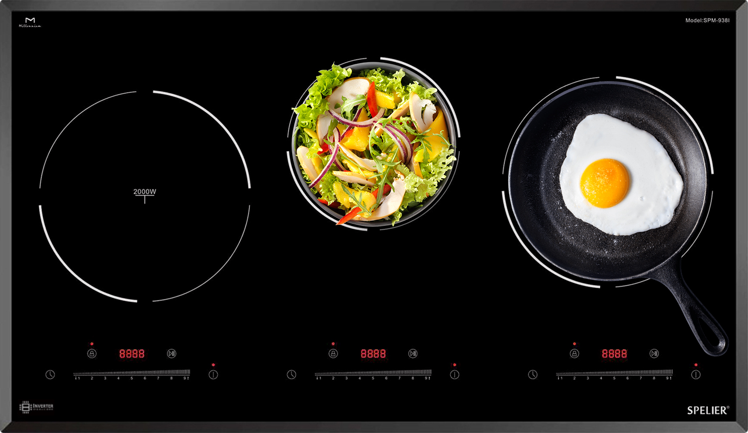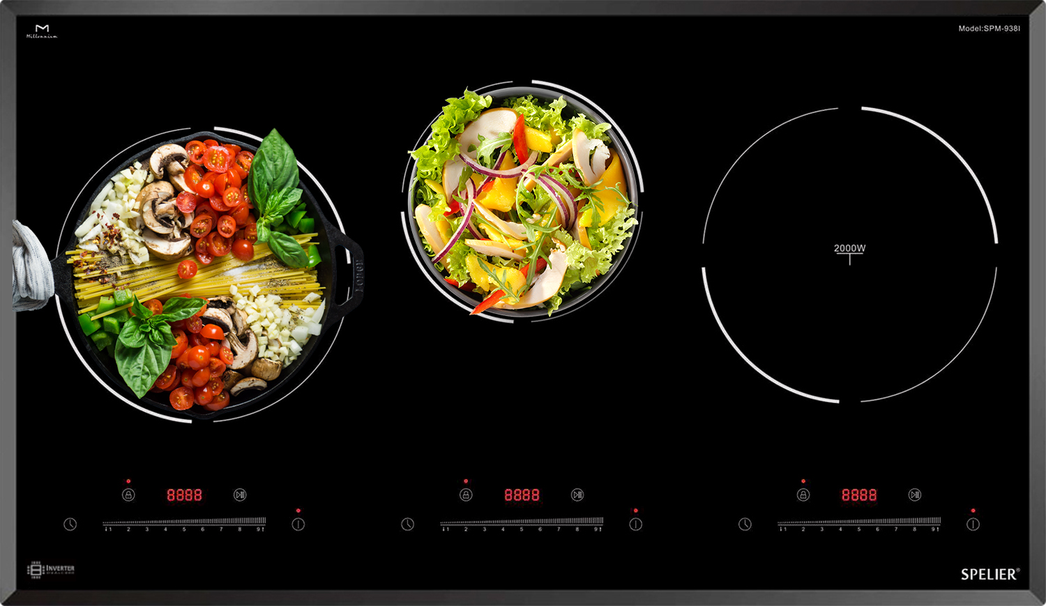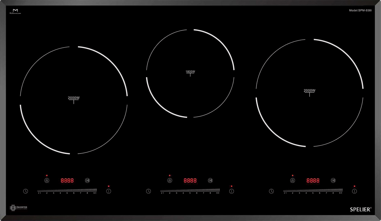Bếp từ Spelier SPM-938I Plus gồm 3 vùng nấu có tổng công suất 5800W. Vùng nấu từ bên trái có khả năng đun nấu siêu nhanh và tiết kiệm điện năng có thể đạt mức công suất tối đa 2000W. Vùng nấu từ giữa có khả năng đun nấu siêu nhanh và tiết kiệm điện năng có thể đạt mức công suất tối đa 1800W. Vùng nấu từ bên trái có khả năng đun nấu siêu nhanh và tiết kiệm điện năng có thể đạt mức công suất tối đa 2000W.