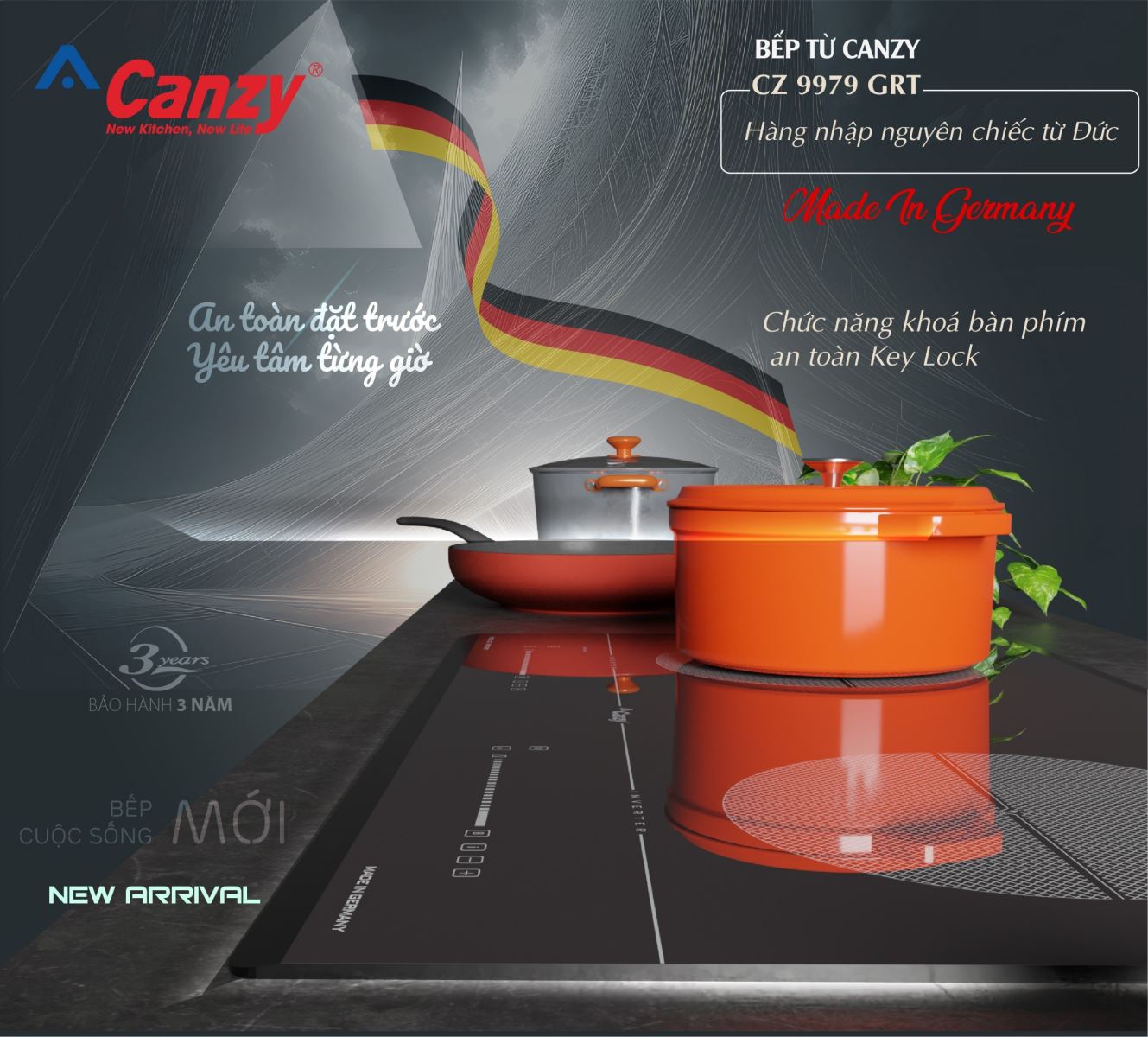 - Bảo vệ quá nhiệt (cảm biến nhiệt độ tích hợp trong từng vùng nấu): Bếp từ Canzy CZ 9979 GRT được thiết kế cảm biến nhiệt độ dưới mỗi vùng nấu, khi có hiện tượng quá nhiệt (nồi đun bị cạn, cháy,..) bếp sẽ chủ động ngắt công suất để đảm bảo an toàn cho thiết bị cũng như đảm bảo không sự cố đáng tiếc xảy ra.