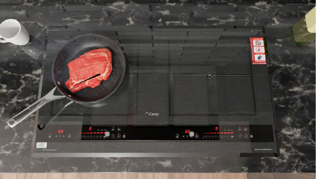 Tự động phát hiện vùng nấu và vùng nấu chỉ nóng lên khi có nồi: Các sản phẩm bếp từ của Canzy bao gồm CZ 797G-62ID sẽ chỉ khởi động công suất khi nồi được đặt lên vùng nấu, trường hợp chưa đặt nồi khi đã khởi động, bếp sẽ không đóng công suất và cảnh báo mã lỗi không có nồi hoặc nồi không phù hợp.