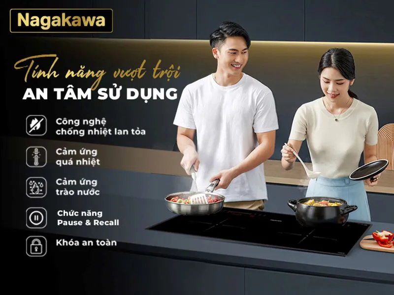 Bếp từ đôi Nagakawa NK2C06MS là sự kết hợp hoàn hảo giữa thiết kế sang trọng và công nghệ hiện đại, mang đến trải nghiệm nấu nướng tiện lợi và an toàn.