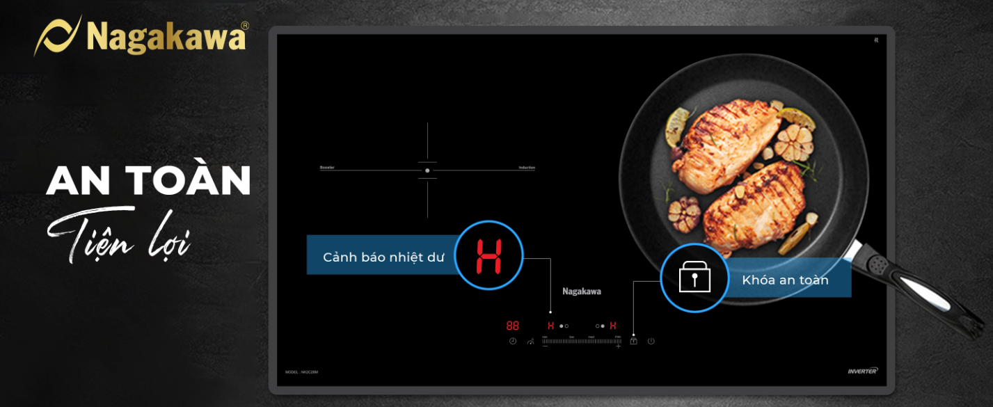 Bếp đôi điện từ Nagakawa UltraSlim NK2C28M sở hữu nhiều tính năng thông minh, chỉ vài thao tác chạm nhẹ tay trên sản phẩm bạn đã lựa chọn được chế độ hoạt động mong muốn như: khóa an toàn, công nghệ chống nhiệt lan tỏa, cảm ứng quá nhiệt, dừng hoạt động khi đồ ăn tràn xuống mắt bếp, chức năng cảnh báo nhiệt dư, tự động tắt bếp khi không sử dụng, công nghệ kiểm soát nhiệt độ bảo vệ thiết bị bếp,… . giúp bạn yên tâm nấu nướng khi nhà có trẻ nhỏ hay phát sinh nhiều công việc cùng lúc.