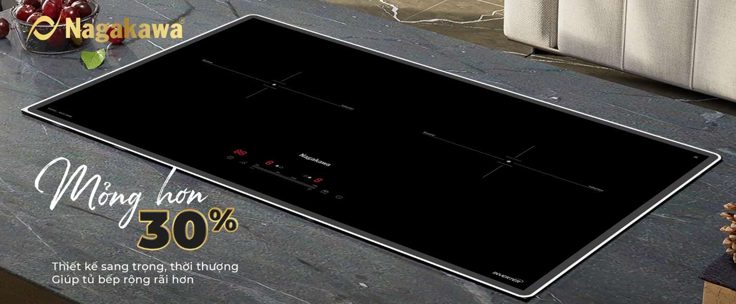 Tiên phong phong cách thiết kế 4.0, Bếp đôi điện từ Nagakawa UltraSlim NK2C29MB có độ dày chỉ 58mm – mỏng hơn 30% so với các sản phẩm bếp từ thông thường. Giờ đây, căn bếp không chỉ được “giải phóng” diện tích tối đa mà còn trở nên sang trọng hơn, hiện đại hơn, khơi nguồn cảm hứng bất tận cho vạn món ngon ra đời.