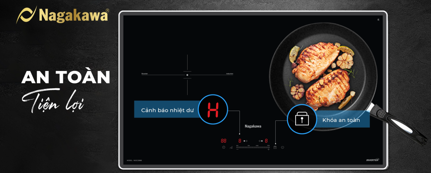 Bếp đôi điện từ Nagakawa UltraSlim NK2C29MB được trang bị các tính năng thông minh tiện lợi cho người sử dụng, đồng thời giúp nâng cao độ bền của bếp như: Công nghệ chống nhiệt lan tỏa, cảm ứng quá nhiệt, tự động ngắt bếp khi không có nồi đun nấu, dừng hoạt động khi thức ăn tràn xuống bếp,…