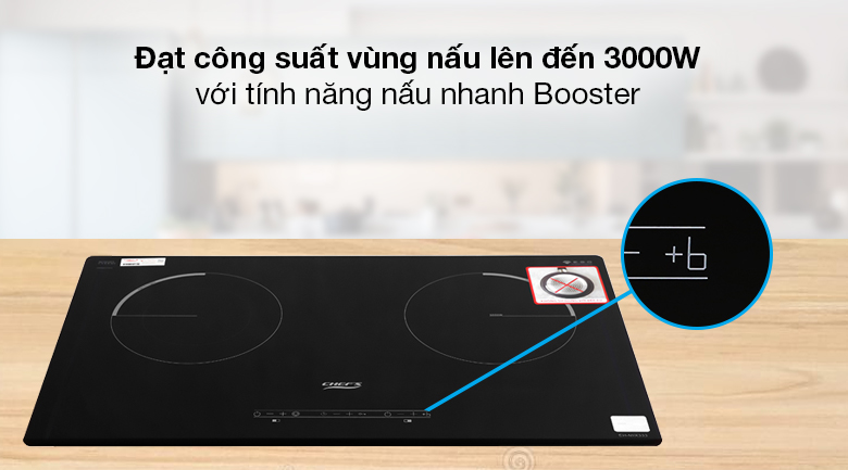 Có tính năng nấu nhanh Booster ở vùng từ (bên phải) cho công suất vùng tăng lên đến 3000W nấu ăn nhanh chóng hơn