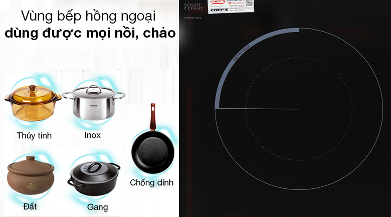 Vùng bếp hồng ngoại sử dụng được với mọi loại nồi chảo