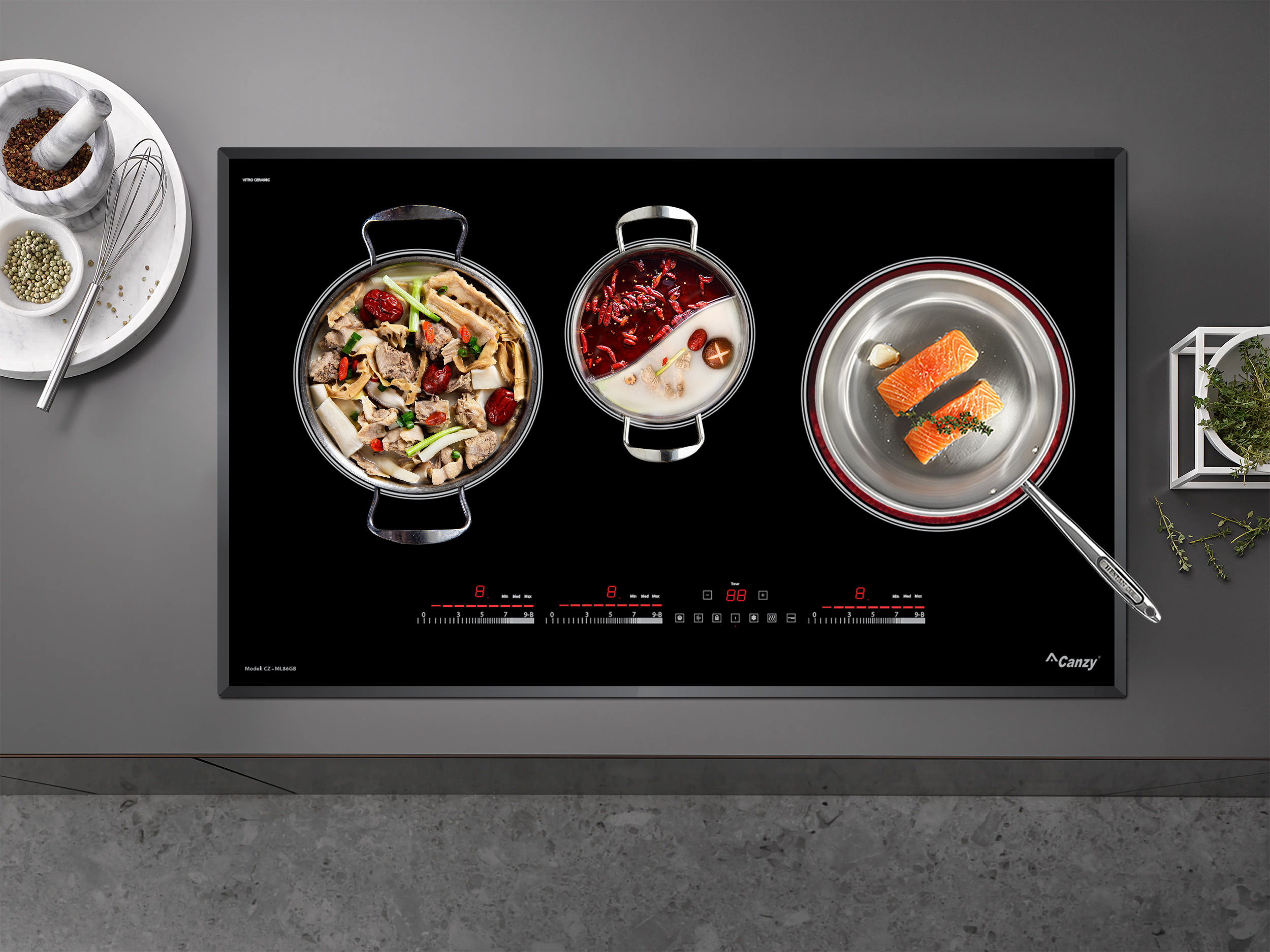 Tự động phát hiện vùng nấu và vùng nấu chỉ nóng lên khi có nồi: Các sản phẩm bếp điện từ của Canzy bao gồm CZ-ML86GB sẽ chỉ khởi động công suất khi nồi được đặt lên vùng nấu, trường hợp chưa đặt nồi khi đã khởi động, bếp sẽ không đóng công suất và cảnh báo mã lỗi không có nồi hoặc nồi không phù hợp.
