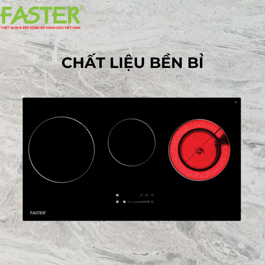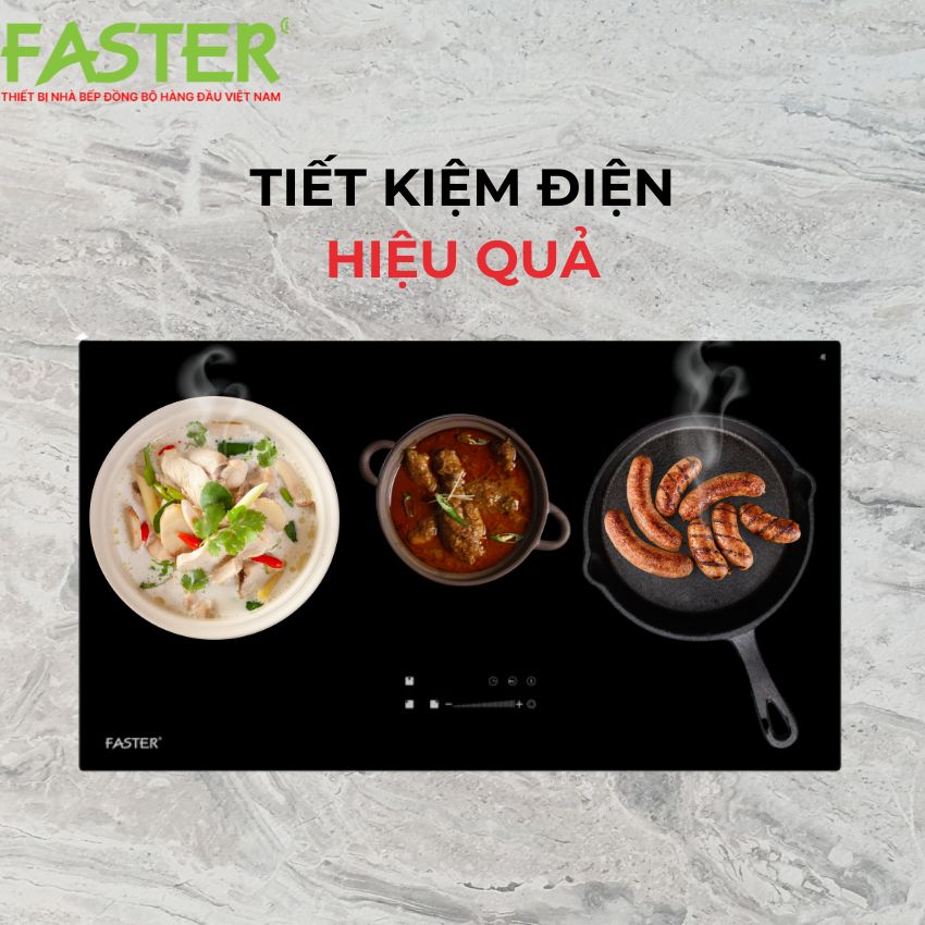 Bếp điện từ Faster FS 713HI gồm 3 vùng nấu với tổng công suất 5300W, vùng nấu từ bên trái có khả năng đun nấu siêu nhanh và tiết kiệm điện năng với công suất 1800W, vùng nấu từ giữa có khả năng đun nấu siêu nhanh và tiết kiệm điện năng với công suất 1300W và vùng nấu hồng ngoại bên phải với 02 vòng nhiệt có công suất tối đa lên tới 2200W.