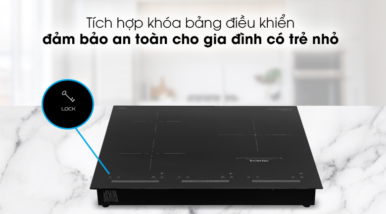 Trong đó có 2 vùng bếp từ, 1 vùng bếp hồng ngoại giúp nấu ăn tiết kiệm thời gian. Cho không gian bếp thông thoáng, rộng rãi hơn nhờ thiết kế có thể lắp đặt âm, nếu căn bếp không phù hợp để lắp âm, bạn có thể chọn cách đặt bếp trên kệ, sử dụng dễ dàng.