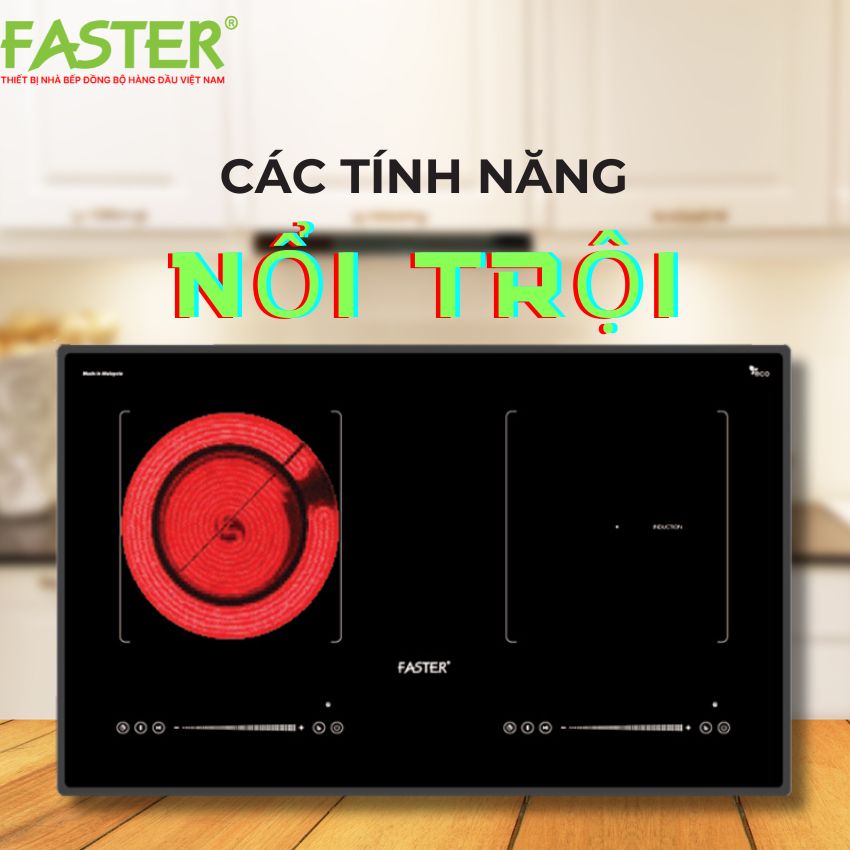 Bếp từ Faster FS 735I Plus được nhập khẩu nguyên chiếc từ Malaysia với thiết kế sang trọng, thời thượng. Bếp gồm 2 lò: 1 lò điện 2 vòng và 2 lò từ. Bảng điều khiển cảm ứng hiện đại cùng nhiều tính năng nấu thông minh. Công nghệ biến tần Inverter mới nhất, an toàn, tiết kiệm điện năng.