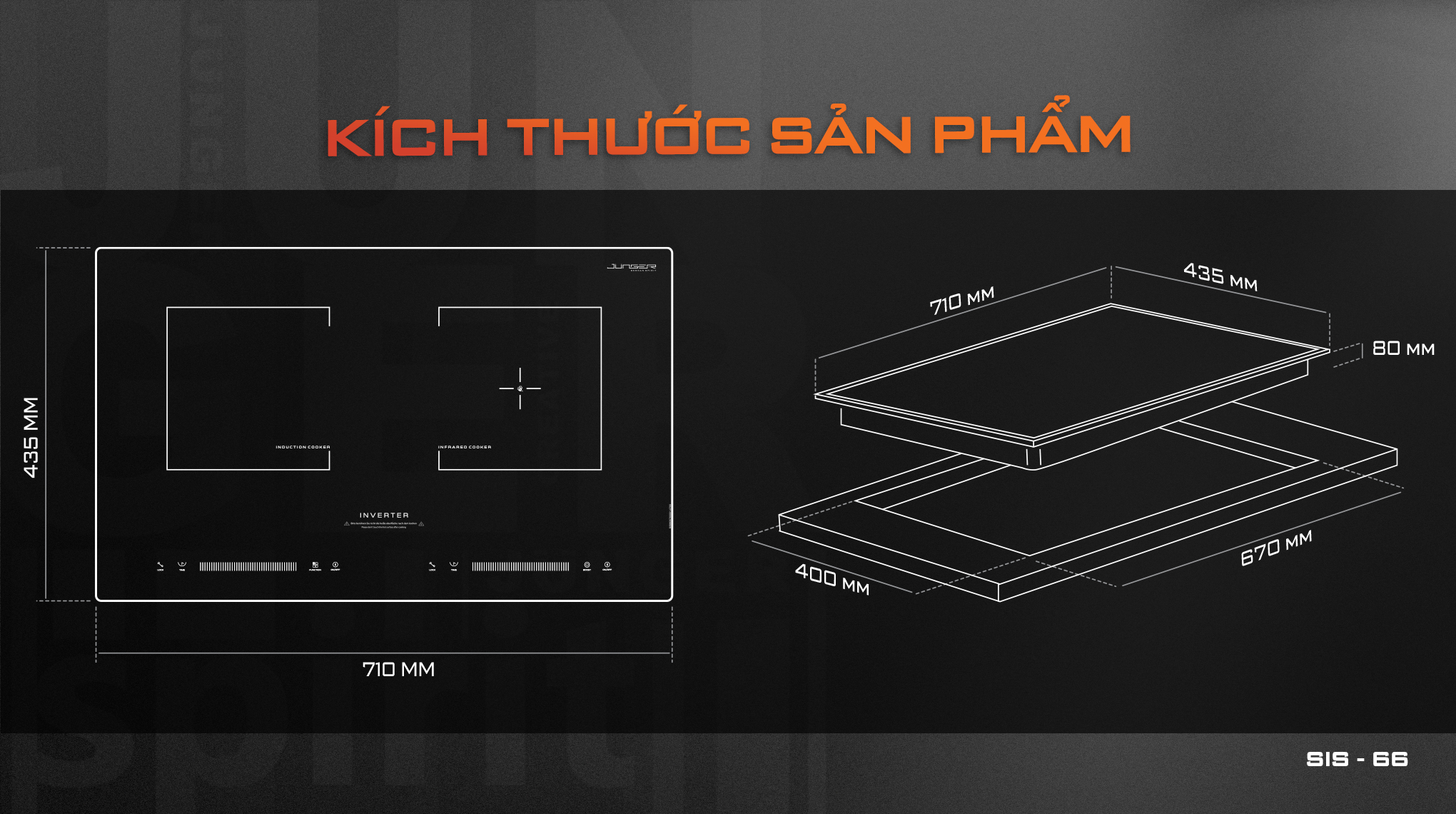 SIS-66 sở hữu kích thước tinh gọn, đáp ứng mọi nhu cầu thiết kế và bố trí bếp. Ưu điểm nổi bật của bếp là có thể dễ dàng lắp đặt âm tủ bếp, tạo nên sự đồng nhất và sang trọng cho không gian bếp. Hoặc bếp cũng có thể lắp đặt dương giúp tiết kiệm diện tích và phù hợp với những khu bếp đã được thiết kế sẵn.