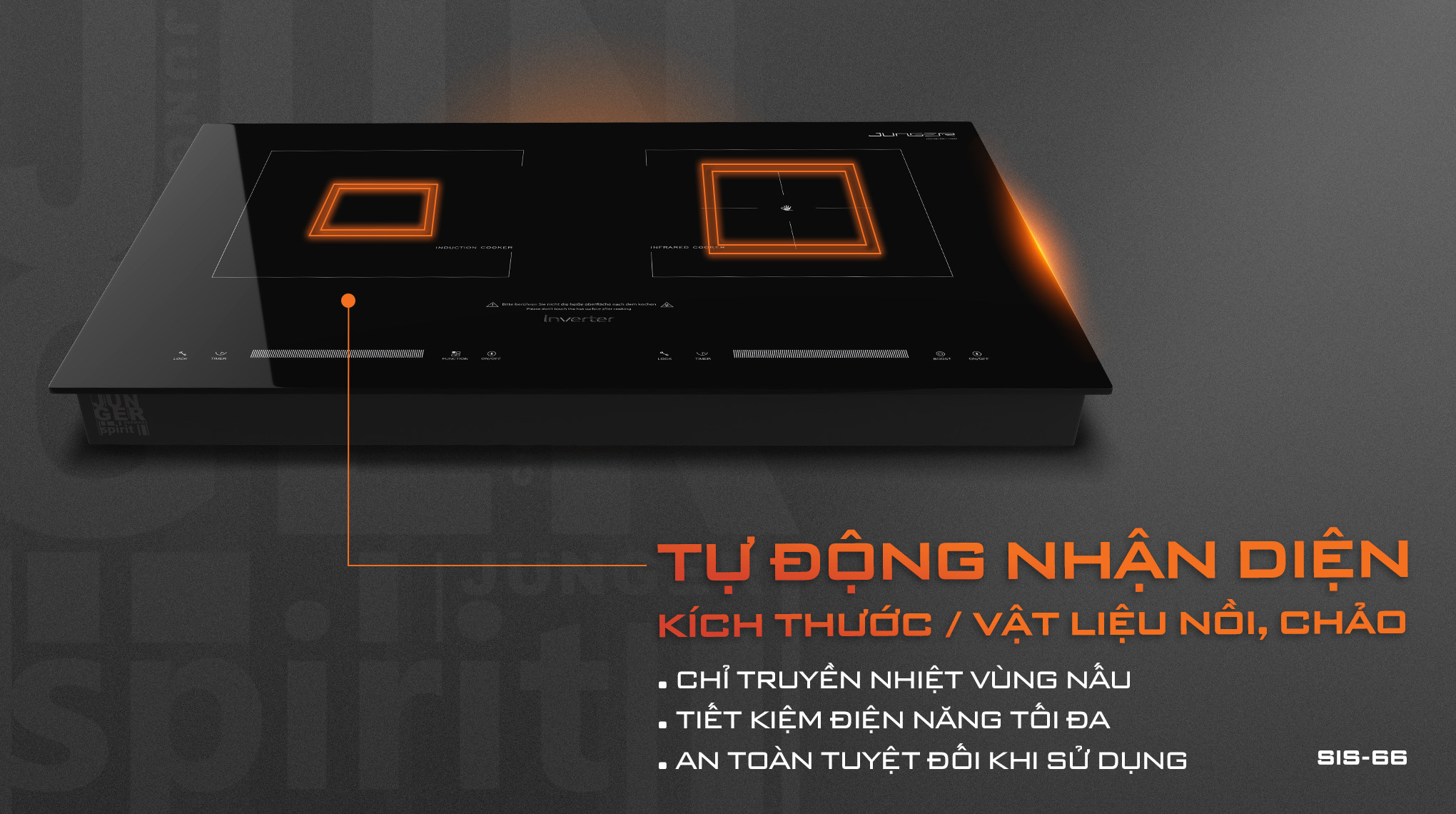 Vượt trội hơn các sản phẩm cùng loại trên thị trường, bếp điện từ hồng ngoại Junger SIS-66 được ứng dụng công nghệ Inverter hiện đại siêu tiết kiệm điện năng, đặc biệt là khi sử dụng ở các mức công suất thấp.