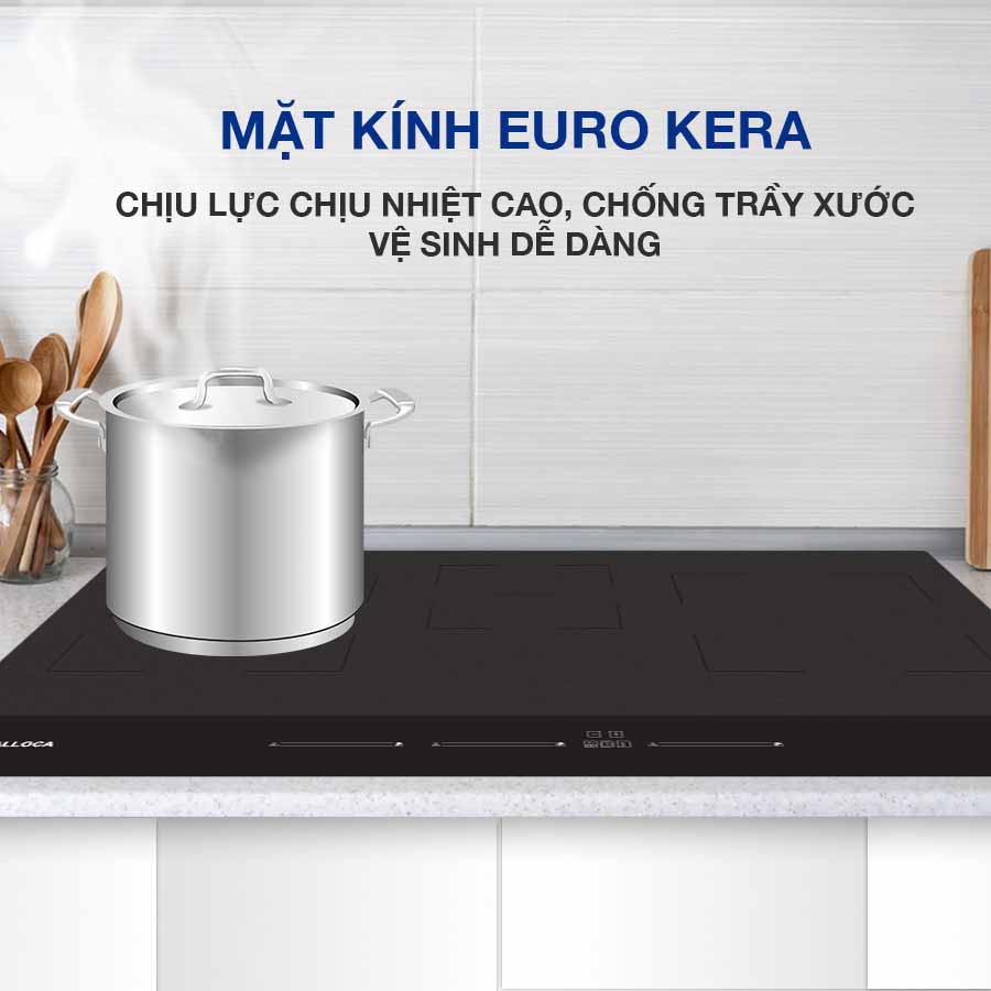 Là bếp từ Malloca MH-803 của thương hiệu nổi tiếng Malloca, cùng mặt kính EuroKera đem đến nét đẹp và sự đẳng cấp hơn. Mặt kính này có những ưu điểm nổi bật như chịu lực và chịu nhiệt tuyệt vời, chống trầy xước. Đặc biệt là có thể chịu được những cú sốc nhiệt, thay đổi nhiệt độ đột ngột trong quá trình nấu mà không bị nứt vỡ hay biến dạng. Hơn nữa, mặt kính này còn dễ dàng lau chùi, không gây trơn trượt trong quá trình nấu….