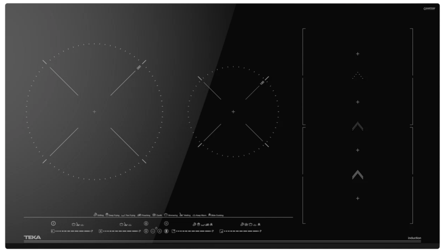 5 vùng nấu của bếp từ Teka IZS 96700 MST BK có kích thước như sau: