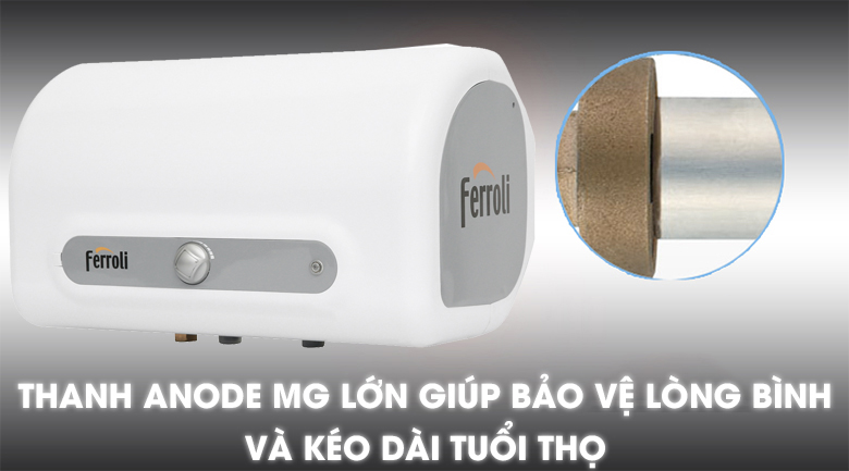 Trang bị thanh ANODE MG không chỉ có khả năng làm mềm nước (loại bỏ các tinh thể kim loại cứng trong nước), bảo vệ lòng bình cho chất lượng nước tốt hơn mà kích thước lớn của thanh còn gia tăng thời gian chống ăn mòn, góp phần kéo dài tuổi thọ sử dụng của bình với thời gian.
