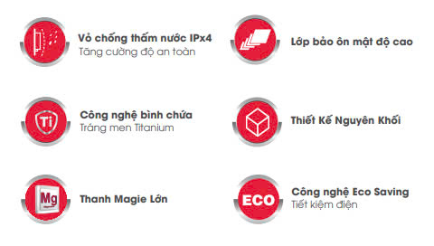– Bình tráng men titanium – hạn chế đóng cặn tăng tuổi thọ bình.