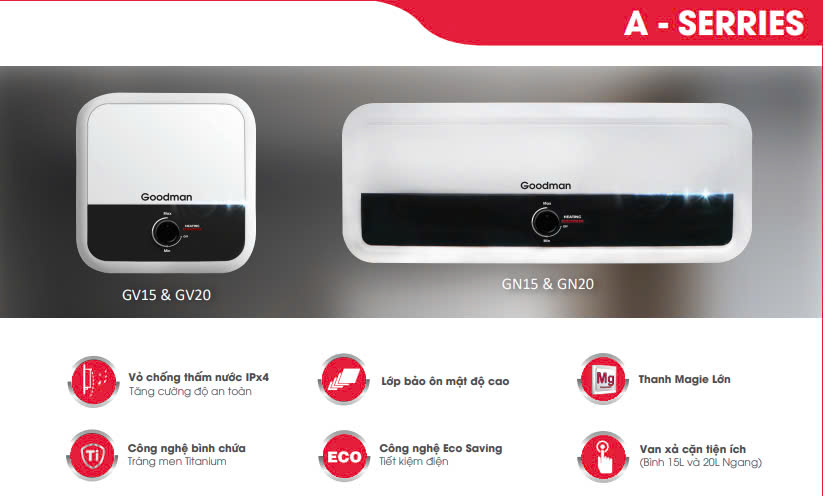 – Dung tích 20l – cho gia đình nhỏ 2-5 người, phòng trọ …