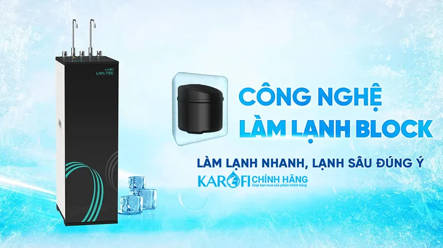 Công nghệ làm lạnh Block giúp rút ngắn thời gian làm lạnh nước, tạo nguồn nước lạnh sâu như trong tủ lạnh. Đặc biệt, nhiệt lạnh duy trì bền bỉ, đáp ứng nhu cầu dùng nước lạnh mọi lúc và liên tục của nhiều thành viên trong gia đình.